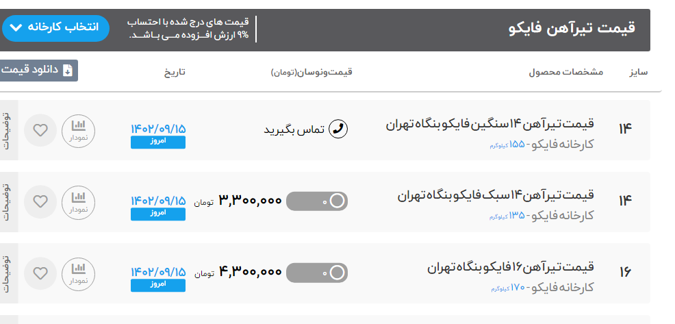 اعلام موجودی تیرآهن هاش (H)