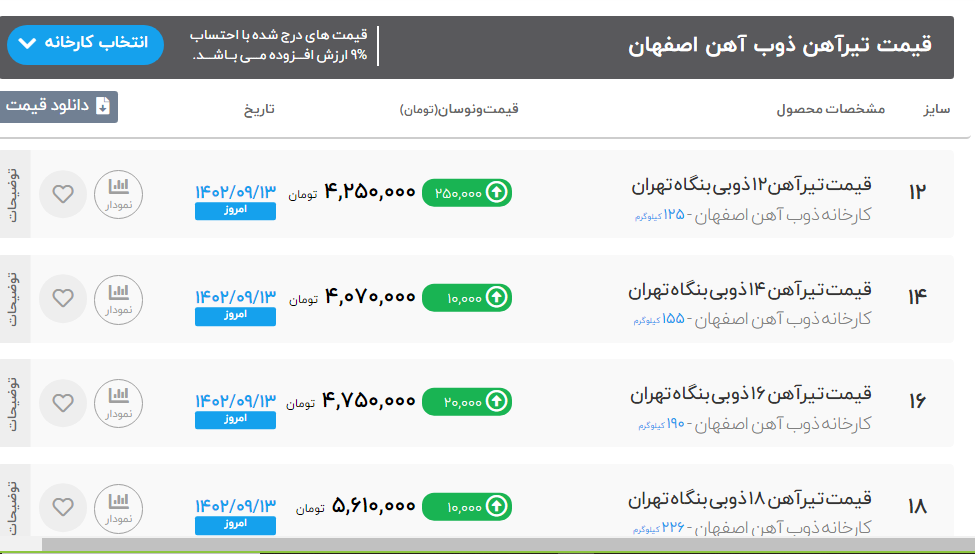 🗓 امروز سهشنبه ۱۴ آذر ماه ۱۴۰۲ ✅قیمت انواع محصولات فولادی (بنگاه اصفهان) ✅قیمت ها با تایید میباشد. (انبار آهن آلات پورجم با باسکول تمام. الکترونیک 60تنی) راه های ارتباطی با ما : ☎️ 0314202 ☎️ 03133869211 ☎️ 03133869212 تیر آهن ذوب آهن 12 44,000,000 تیر آهن ذوب آهن 14 41,500,000 تیر آهن ذوب آهن 16 48,000,000 تیر آهن ذوب آهن 18 57,000,000 تیر آهن ذوب آهن20 78,000,000 تیر آهن ذوب آهن22 90,000,000 تیر آهن ذوب آهن24 97,000,000 تیر آهن ذوب آهن27 112,000,000 تیر آهن ذوب آهن30 134,000,000 ✅ کلیه محصولات، بارگیری سریع، آماده ارسال