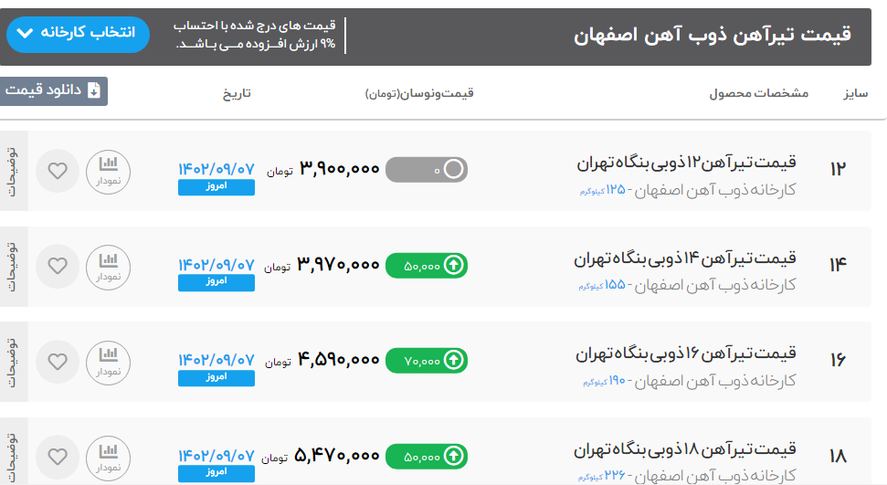 #قیمت #تیرآهن #ذوب_آهن #انبار_تهران 🌎 سه شنبه 07 آذر ماه 1402 🌎 تيرآهن 12 ⏪ 39200000 ریال تيرآهن 14 ⏪ 39800000 ریال تيرآهن 16 ⏪ 46000000 ریال تيرآهن 18 ⏪ 54800000 ریال تيرآهن20 ⏪ 72000000 ریال تیرآهن22 ⏪ 81000000 ریال تیرآهن24 ⏪ 93000000 ریال تیرآهن27 ⏪ 108000000 ریال تیرآهن30 ⏪ 130000000 ریال ✅تهران آهن خریدی امن,آسان,ارزان ✅کارشناس فروش : آقای قاجار 🔴 مشاهده قیمت تیرآهن ذوب آهن 🔴 ⚙️برای مشاهده کامل جدول قیمت تیرآهن می توانید به سایت تهران آهن مراجعه کنید: ✅ (50 خط ویژه): ☎️021-86073000 📱 instagram.com/tehran.ahan 🌏 https://b2n.ir/p70862 🔗 t.me/Tehran_ahan