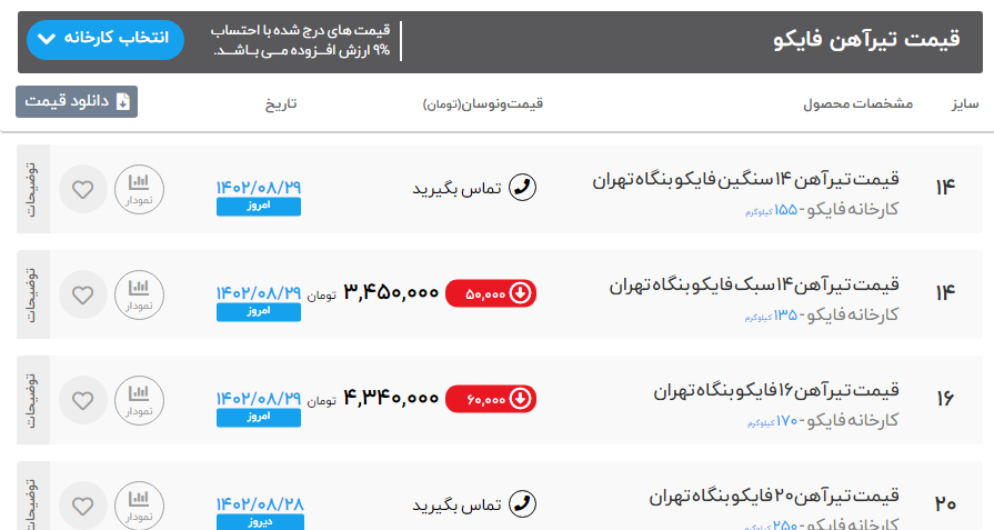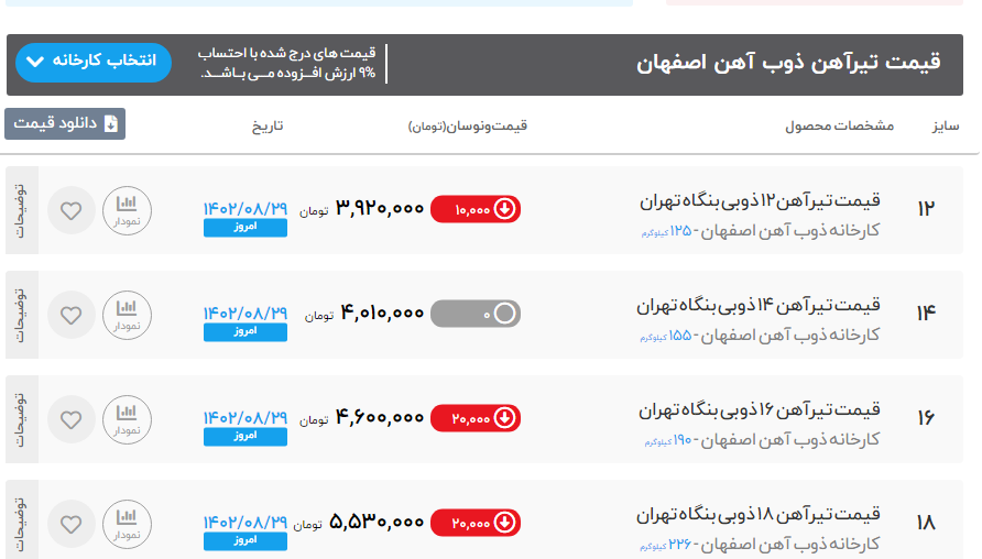 #تیرآهن_ذوبی_ شاخه انبار اصفهان تیر۱۲ ۳۹۰۰۰۰۰۰ ریال تیر۱۴ ۴۰۰۰۰۰۰۰ ریال تیر۱۶ ۴۵۵۰۰۰۰۰ ریال تیر۱۸ ۵۵۵۰۰۰۰۰ ریال تیر۲۰ ۷۱۰۰۰۰۰۰ ریال تیر۲۲ ۸۱۵۰۰۰۰۰ ریال تیر۲۴ ۹۳۰۰۰۰۰۰ ریال تیر۲۷ ۱۰۸۰۰۰۰۰۰ ریال تیر۳۰ ۱۳۰۰۰۰۰۰۰ ریال قیمت ها با تایید تلفنی