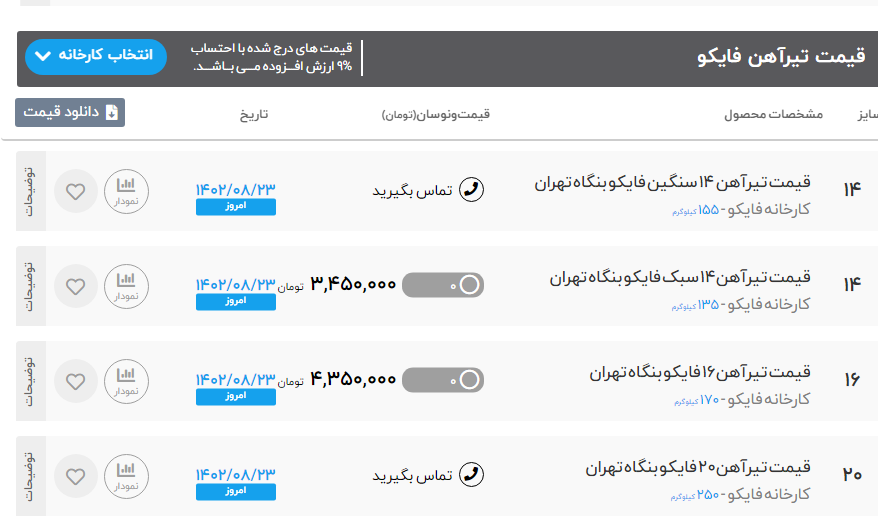 ⭐️ #تیرآهن 📍 تحویل: #بنگاه_تهران 📅 تاریخ: 1402/08/23 🏭 #ترک 🇹🇷 تیرآهن ۸ ⬅️ ۳۶/۰۰۰/۰۰۰ تیرآهن ۱۰ ⬅️ ۵۲/۰۰۰/۰۰۰ 🏭 #ماهان تیرآهن۱۴ ⬅️۳۰/۲۰۰/۰۰۰ تیرآهن۱۸ ⬅️ ۵۱/۰۰۰/۰۰۰ 🏭 #اهواز تیرآهن۱۴⬅️ ۳۳/۵۰۰/۰۰۰ تیرآهن۱۶⬅️ ۴۱/۵۰۰/۰۰۰ 🏭 #فایکو تیرآهن۱۴ ⬅️ ۳۴/۵۰۰/۰۰۰ تیرآهن۱۶ ⬅️ ۴۴/۰۰۰/۰۰۰ تیرآهن۱۸⬅️۵۴/۰۰۰/۰۰۰ تیرآهن۲۰⬅️۶۵/۵۰۰/۰۰۰ تیرآهن۲۲⬅️۷۷/۰۰۰/۰۰۰ تیرآهن۲۴⬅️۹۱/۰۰۰/۰۰۰ 🏭 #یزد تیرآهن۱۴ ⬅️ ۳۴/۵۰۰/۰۰۰ تیرآهن۱۶ ⬅️ ۴۴/۰۰۰/۰۰۰ تیرآهن۱۸ ⬅️ ۵۵/۰۰۰/۰۰۰ تیرآهن۲۰ ⬅️ ۶۵/۵۰۰/۰۰۰ تیرآهن۲۲ ⬅️ ۷۶/۵۰۰/۰۰۰ تیرآهن۲۴ ⬅️۹۰/۵۰۰/۰۰۰ 🏭 #اطلس تیرآهن۱۴ ⬅️ ۳۰/۲۰۰/۰۰۰ 🏭 #کرمانشاه تیرآهن۱۴ ⬅️ ۳۰/۵۰۰/۰۰۰ 🏭#بناب تیرآهن۱۴⬅️۳۴/۰۰۰/۰۰۰ 🔰ستونی ۱۴⬅️۳۴۹/۰۰۰🔰 🌐 مشاهده لیست کامل قیمتها ⬅️ https://b2n.ir/g22357 ☎️ 1836 ☎️ 021 - 6299 9080 📞 (داخلی 505) ⭐️راحت بخرید، مطمئن بسازید 🆔 @MahdeFoolad