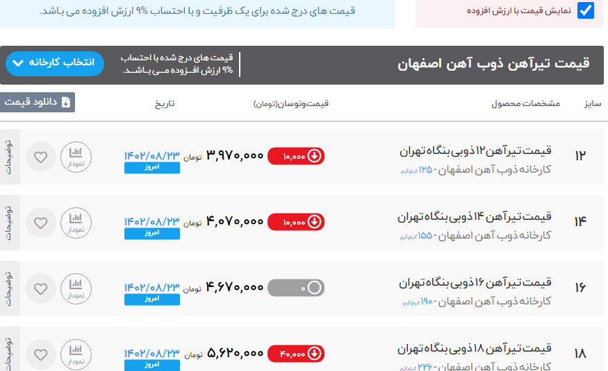 ♻️#فیدار_مبین_آژند ▪️قیمت_تیرآهن_ذوب آهن_اصفهان (انبار آهن 505) سایز 12 : 3.900.000 سایز 14 : 4.050.000 سایز 16 : 4.650.000 سایز 18 : 5.650.000 سایز 20 : 7.200.000 سایز 22 : 8.300.000 سایز 24 : 9.400.000 سایز 27 : 10.900.000 سایز 30 : 13.200.000 ▪️قیمت_تیرآهن_i7 (انبار آهن 505) سایز 14 : 4.100.000 سایز 16 : 4.600.000 سایز 18: 5.650.000 سایز 20 : 6.900.000 ▪️قیمت_میلگرد_ذوب آهن_اصفهان (انبار آهن 505) سایز 12 : 25.600 سایز 14 : 24.300 سایز 16 : 24.300 سایز 18 : 24.700 سایز 20 : 24.200 سایز 22 : 24.200 سایز 25 : 24.200 سایز 28 : 23.800 سایز 32 : 23.800 ▪️قیمت_میلگرد (انبار آهن 505) سایز 8 : تماس سایز 10 : تماس سایز 12 : (مبدأ )22.200 سایز 14 الی 25 : 22.200 سایز28: 22.400 سایز32: 22.400 ▪️قیمت_نبشی (موجود، انبار آهن 505) سایز 4 ضخامت 3 : 25.000 سایز 4 ضخامت4 : 24.900 سایز5 ضخامت 3 : 25.000 سایز 5 ضخامت 4 : 25.000 سایز5 ضخامت 5 : 24.700 سایز 6 ضخامت5 : ناموجود سایز 6 ضخامت6 : 24.700 سایز8 ضخامت 8 : 24.700 سایز 10 : 25.100 سایز12: 25.500 ▪️قیمت_ناودانی (موجود، انبار آهن 505) سایز 8 سبک: 25.900 سایز 8 سنگین: 25.600 سایز10 سبک: 25.900 سایز 10سنگین( به بالا): 25.600 سایز 12 به بالا: 26.000 ▪️قیمت_پروفیل (موجود، انبار آهن 505) ضخامت 2 : 38.500 ضخامت 2.5 :37.000 #جهت_مشاهده_پروفایل_فیدار_مبین_آژند👇🏻 🆔https://foolad24.com/profile/14013 #جهت_مشاهده_اعلام_موجودی_فیدار_مبین_آژند👇🏻 https://foolad24.com/profile/14013/inventory ☎️ +983131505 ✅https://t.me/ahan505fidar 📌https://instagram.com/ahan.505?igshid=MzRlODBiNWFlZA== 🌐 www.ahan505.com