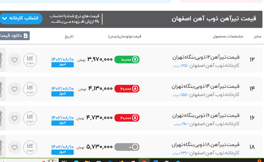 #رادین_پولاد_توسن_اسپادانا ⚜️#قیمت_تیر_ذوب تیرآهن شاخه ای12____40.000.000ریال تیرآهن شاخه ای14____41.000.000ریال تیرآهن شاخه ای 16____47.000.000ریال تیرآهن شاخه ای 18____57.000.000ریال تیرآهن شاخه ای 20____71.000.000ریال تیرآهن شاخه ای 22___83.000.000ریال تیرآهن شاخه ای 24___94.000.000ریال تیرآهن شاخه ای 27____110.000.000ریال تیرآهن شاخه ای 30____134.000.000ریال ⚜️#قیمت_تیر_ذوب_i7 تیرآهن 14 ____40.500.000ریال تیرآهن 16 ____46.000.000ریال تیرآهن 18 ____56.000.000ریال تیرآهن 20 ____67.500.000ریال ⚜️#قیمت_میلگرد_شاهین میلگرد8____250.500ریال میلگرد10____247.500ریال میلگرد12____247.500ریال میلگرد14____244.500ریال میلگرد16____244.500ریال میلگرد18____244.500ریال میلگرد20___244.500ریال میلگرد22____244.500ریال میلگرد25___244.500ریال میلگرد28___244.500ریال میلگرد32___244.500ریال ⚜️#قیمت_میلگرد_راد_همدان میلگرد8____257.950ریال میلگرد10____254.950ریال میلگرد12____248.950ریال میلگرد14____245.950ریال میلگرد16____245.950ریال میلگرد18____245.950ریال میلگرد20___245.950ریال میلگرد22____245.950ریال میلگرد25___246.450ریال میلگرد28___246.450ریال #جهت_مشاهده_پروفایل_رادین_پولاد_توسن_اسپادانا👇🏻 📌https://foolad24.com/profile/14665 #جهت_مشاهده_اعلام_موجودی_رادین_پولاد_توسن_اسپادانا👇🏻 https://foolad24.com/profile/14665/inventory شماره های تماس : 03134036 09925008927 09925008944 09925008932 09925008922 لینک های مرتبط با ما:🏻🏻 لینک وبسایت توسن فولاد (https://tosanfoolad.com/)لینک کانال توسن فولاد (https://t.me/tosan_foolad)لینک اینستاگرام توسن فولاد https://foolad24.com/dashboard/user/14665
