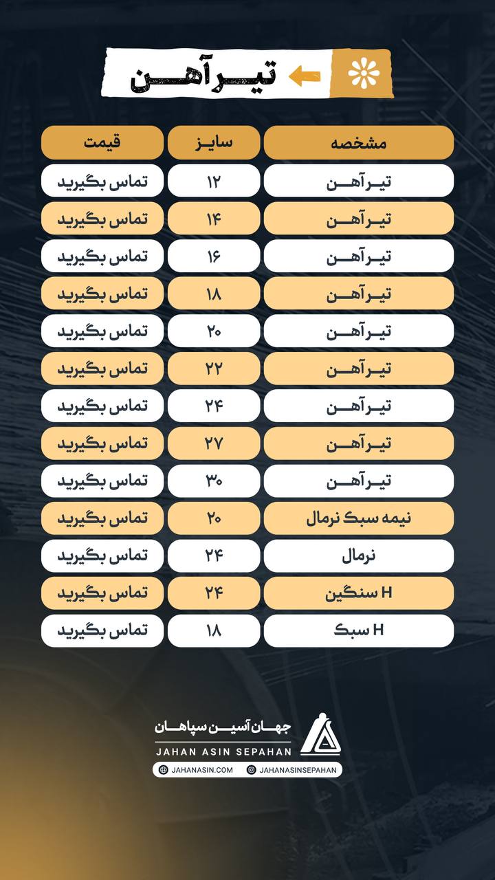 تیرآهن 12↔️ 28050 تومان تیرآهن 14↔️ 27400 تومان تیرآهن 16↔️ 25400 تومان