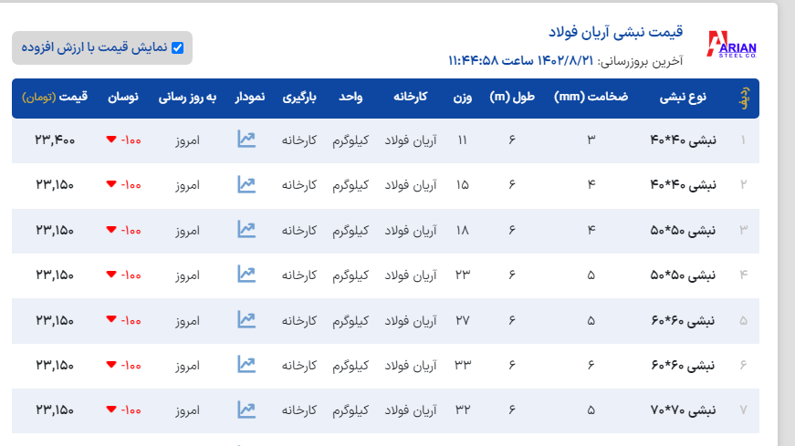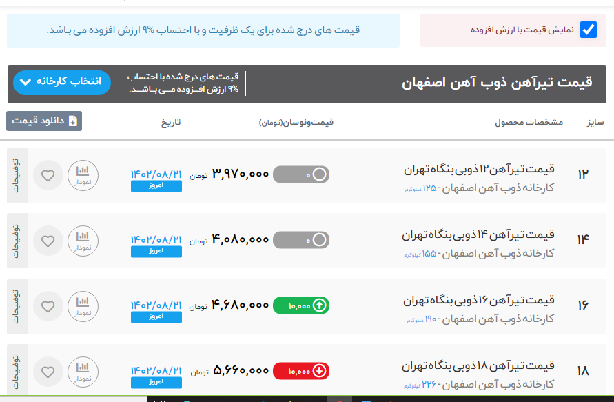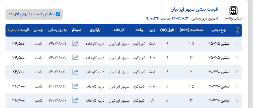 قیمت روز تیرآهن و موجودی انبار دیجی آهن