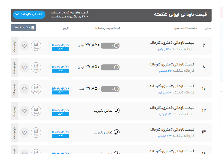 فولاد جاوید بناب 🔹نبشی 40*3 سبک : ۲۹۲۰۰۰ ریال 🔹نبشی 40*3 : ۲۸۲۰۰۰ ریال 🔹نبشی 40*4 سبک : ۲۸۲۰۰۰ ریال 🔹نبشی 40*4 : ۲۸۲۰۰۰ ریال 🔹نبشی 50*3 سبک : ۲۹۲۰۰۰ ریال 🔹نبشی 50*3 : ۲۸۲۰۰۰ ریال 🔹نبشی 50*4 سبک : ۲۸۲۰۰۰ ریال 🔹نبشی 50*4 : ۲۸۲۰۰۰ ریال 🔹نبشی 50*5 سبک : ۲۸۲۰۰۰ ریال 🔹نبشی 50*5 : ۲۸۲۰۰۰ ریال 🔹نبشی 60*3 : ۲۹۲۰۰۰ ریال 🔹نبشی 60*4 : ۲۸۲۰۰۰ ریال 🔹نبشی 60*5 : ۲۸۲۰۰۰ ریال