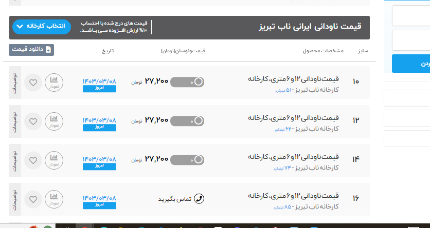 📢#ناودانی_سپری_شکفته_مشهد 📅سه شنبه 1403/03/08 📍 بارگیری از کارخانه مشهد 📍 ناودانی 6  (30 کیلو)         ⏪ 27000 تومان ناودانی 8 (41 کیلو)          ⏪ 26900 تومان ناودانی 8 (80 کیلو)          ⏪ تماس بگیرید ناودانی 10(50 کیلو)         ⏪ 26900 تومان ناودانی 10(100کیلو)        ⏪ تماس بگیرید 🔴فروش با تایید موجودی قیمت می باشد🔴 🔴 قیمت نهایی هنگام اخذ آدرس 🔴 ☎️ 021 910 10 666 ☎️ 061 53 222 100 🆔 @ahanland