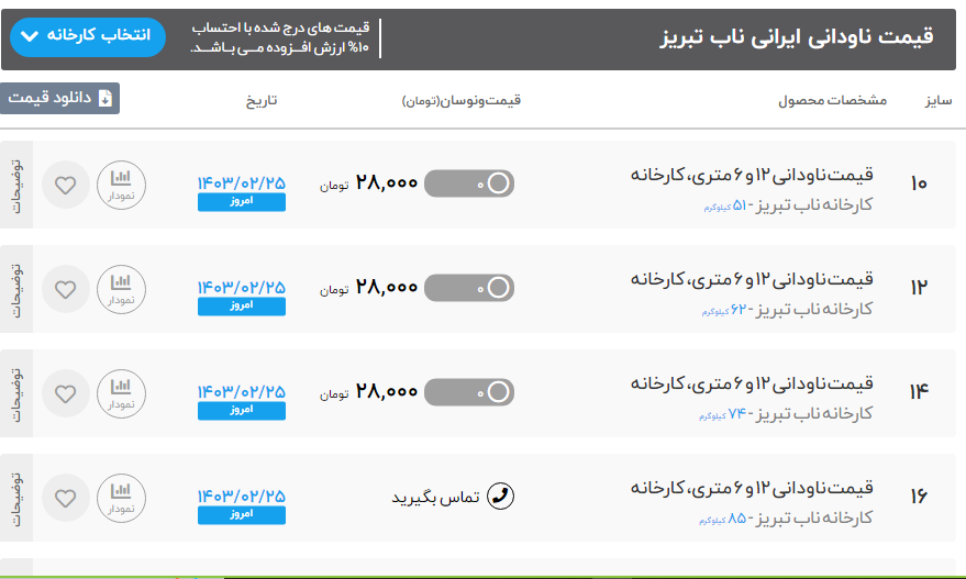 #ناودانی_ناب_تبریز 📅سه شنبه 1403/02/25 📍 بارگیری از انبار تبریز📍 ناودانی 8 (42.5 کیلویی) ↔️ 27900 تومان ناودانی 10 (51.5 کیلویی) ↔️ 28000 تومان ناودانی 12 (62.5 کیلویی) ↔️ 28000 تومان ناودانی 14 (74 کیلویی) ↔️ 28000 تومان ناودانی 16 (85 کیلویی) ↔️ تماس بگیرید مقاطع 12 متری: ناودانی 8 (84.5 کیلویی) ↔️ 27900 تومان ناودانی 10 (103 کیلویی) ↔️ 28000 تومان ناودانی 12 (125 کیلویی) ↔️ 28000 تومان ناودانی 14 (148 کیلویی) ↔️ 28000 تومان ناودانی 16 (170.5 کیلویی) ↔️ تماس بگیرید 🔴فروش با تایید موجودی قیمت می باشد🔴 🔴 قیمت نهایی هنگام اخذ آدرس🔴 جهت خرید، مشاوره و ارتباط با کارشناسان فروش: https://zil.ink/ahanland ☎️ 021 910 10 666 ☎️ 061 53 222 100 🆔 @ahanland