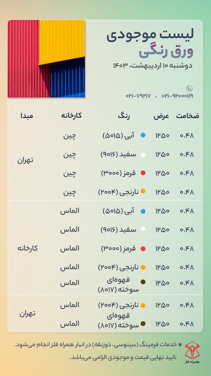 #اردیبهشت_سپید ⚜️تامین و فروش ورق گالوانیزه و رنگی از تمامی کارخانه ها ⚜️ محصولات زیر را از ما بخواهید : 🔸ورق گالوانیزه 🔸ورق رنگی 🔸ورق روغنی 🔸ورق سیاه #جهت_مشاهده_پروفایل_اردیبهشت_سپید👇🏻🏻 https://foolad24.com/profile/10922 #جهت_مشاهده_اعلام_موجودی_اردیبهشت_سپید👇🏻 🏻 https://foolad24.com/profile/10922/inventory 🔸راه های ارتباطی با ما : 📱09126331992 📞02188744944 📍تهران خ مطهری بین مفتح و سلیمان خاطر پ۱۵۵ طبقه اول واحد ۶