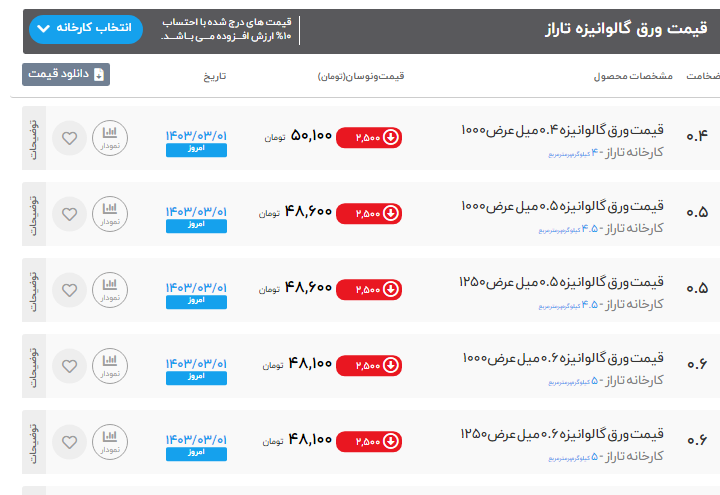 اعلام موجودی ورق گالوانیزه خوش قیمت