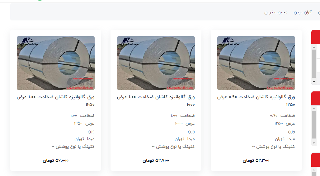 #تهران_گالوانیزه_برنا ☑️ آهن شاپ با پیشینه شرکت تهران گالوانیزه برنا یکی از بزرگترین مراجع معرفی و توزیع کننده محصولات تولید کننده های مهم ورق های گالوانیزه، گالوانیزه رنگی و روغنی در کشور است. ☑️ سامانه فروش www.ahan.shop (http://www.ahan.shop/) با توجه به گسترش اینترنت در جهان و ایران در راستای ارائه خدمات فروش آنلاین راه اندازی گردیده است. 📣ورق رنگی و روغنی موجود هست. 📣ورق گالوانیزه از ضخامت 0/30 الی 3/5 موجود هست. 📣برند های فولاد مبارکه، کاشان، ورق خودرو، تاراز، دشتستان، شهریار تبریز، روی اندود، هفت الماس، سمنان، گیلان، فولاد غرب، بهمن و چین موجود هستند. فروش ویژه کالاهای زیر: 🔹0.40 عرض 1250 تاراز 🔹0.45 عرض 1250 تاراز 🔹0.50 عرض 1250 تاراز 🔹0.60 عرض 1250 تاراز 🔹0.70 عرض 1000 تاراز 🔹0.70 عرض 1250 تاراز 🔹0.80 عرض 1250 تاراز 🔹1.00 عرض 1000 تاراز 🔹1.00 عرض 1250 تاراز 🔹1.50 عرض 1250 تاراز 🔹2.00 عرض 1000 تاراز 🔹0.70 عرض 1100 ورق خودرو 🔹1.47 عرض 1170 ورق خودرو #جهت_مشاهده_پروفایل_تهران_گالوانیزه_برنا👇🏻 🔸https://foolad24.com/profile/15739 #جهت_مشاهده_اعلام_موجودی_تهران_گالوانیزه_برنا👇🏻 https://foolad24.com/profile/15739/inventory 👈🏻راه های ارتباطی با ما : ☎️ ۵۷۶۰۲ (۳۰خط) 🌐www.ahan.shop 🆔instagram (https://instagram.com/ahanshop) 📧@TGBorna