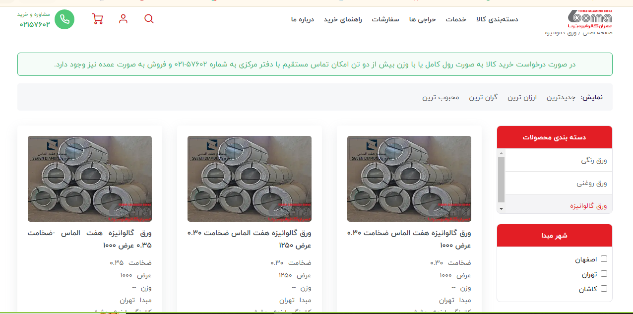 #تهران_گالوانیزه_برنا ✅ فروش ویژه ورق گالوانیزه انباری رول سبک تاراز: 🔖🔖🔖🔖🔖 *️⃣0.40 عرض 1250 تاراز *️⃣0.45 عرض 1250 تاراز *️⃣0.50 عرض 1000 تاراز 💱0.50 عرض 1250 تاراز *️⃣0.60 عرض 1000 تاراز *️⃣0.60 عرض 1250 تاراز *️⃣0.70 عرض 1000 تاراز *️⃣0.80 عرض 1250 تاراز *️⃣1.00 عرض 1250 تاراز در انبار تهران موجود شد 📶 #جهت_مشاهده_پروفایل_تهران_گالوانیزه_برنا👇🏻 🔸https://foolad24.com/profile/15739 #جهت_مشاهده_اعلام_موجودی_تهران_گالوانیزه_برنا👇🏻 https://foolad24.com/profile/15739/inventory 👈🏻راه های ارتباطی با ما : ☎️ ۵۷۶۰۲ (۳۰خط) 🌐www.ahan.shop 🆔instagram (https://instagram.com/ahanshop) 📧@TGBorna