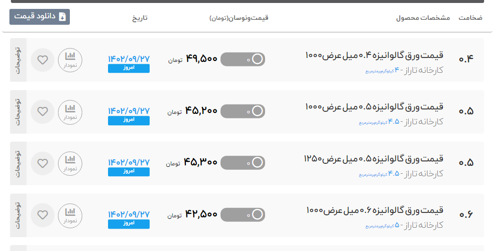 ⭐️ #ورق_گالوانیزه 📅 تاریخ: 1402/09/27 📍تحویل: #انبار_تهران 🏭 #الماس #دشتستان ورق۰/۵۰ میل عرض ۱۰۰۰ ⬅️call ورق۰/۵۰میل عرض ۱۲۵۰ ⬅️ call ورق۰/۶۰ میل عرض ۱۰۰۰ ⬅️ ۴۲۸۰۰۰ ورق۰/۶۰میل عرض ۱۲۵۰ ⬅️ ۴۳۵۰۰۰ ورق۰/۷۰ میل عرض ۱۰۰۰ ⬅️ ۴۰۸۰۰۰ ورق۰/۷۰میل عرض ۱۲۵۰ ⬅️۴۰۸۰۰۰ ورق۰/۸۰ میل عرض ۱۰۰۰ ⬅️ ۴۰۰۰۰۰ ورق۰/۸۰میل عرض ۱۲۵۰ ⬅️ ۴۰۰۰۰۰ ورق۰/۹۰ میل عرض ۱۰۰۰ ⬅️call ورق۰/۹۰میل عرض ۱۲۵۰ ⬅️ ۴۰۲۰۰۰ ورق ۱ میل عرض ۱۰۰۰ ⬅️ ۳۹۸۰۰۰ ورق ۱ میل عرض ۱۲۵۰ ⬅️ call ورق ۱/۲۵میل عرض ۱۰۰۰ ⬅️ ۳۹۷۰۰۰ ورق ۱/۲۵ میل عرض ۱۲۵۰⬅️ ۳۹۸۰۰۰ ورق ۱/۵ میل عرض ۱۰۰۰ ⬅️ ۴۰۰۰۰۰ ورق ۱/۵ میل عرض ۱۲۵۰⬅️ ۴۰۰۰۰۰ ورق ۲ میل عرض ۱۰۰۰ ⬅️ call ورق ۲ میل عرض ۱۲۵۰ ⬅️ call 🏭 #تاراز #شهرکرد #فولادمبارکه ورق۰/۵۰ میل عرض ۱۰۰۰ ⬅️call ورق۰/۵۰میل عرض ۱۲۵۰ ⬅️ call ورق۰/۶۰ میل عرض ۱۰۰۰ ⬅️ ۴۳۴۰۰۰ ورق۰/۶۰میل عرض ۱۲۵۰ ⬅️ ۴۳۱۰۰۰ ورق۰/۷۰ میل عرض ۱۰۰۰ ⬅️ ۴۱۵۰۰۰ ورق۰/۷۰میل عرض ۱۲۵۰ ⬅️۴۱۲۰۰۰ ورق۰/۸۰ میل عرض ۱۰۰۰ ⬅️ ۴۰۳۰۰۰ ورق۰/۸۰میل عرض ۱۲۵۰ ⬅️ ۴۰۳۰۰۰ ورق۰/۹۰ میل عرض ۱۰۰۰ ⬅️call ورق۰/۹۰میل عرض ۱۲۵۰ ⬅️ ۴۰۳۰۰۰ ورق ۱ میل عرض ۱۰۰۰ ⬅️ ۴۰۲۰۰۰ ورق ۱ میل عرض ۱۲۵۰ ⬅️ call ورق ۱/۲۵میل عرض ۱۰۰۰ ⬅️ ۴۰۳۰۰۰ ورق ۱/۲۵ میل عرض ۱۲۵۰⬅️ ۴۰۲۰۰۰ ورق ۱/۵ میل عرض ۱۰۰۰ ⬅️ ۴۰۷۰۰۰ ورق ۱/۵ میل عرض ۱۲۵۰⬅️ ۴۰۶۰۰۰ ورق ۲ میل عرض ۱۰۰۰ ⬅️ call ورق ۲ میل عرض ۱۲۵۰ ⬅️ call 🌐 مشاهده لیست کامل قیمتها ⬅️ https://mahdefoolad.com/galvanized-sheet/ ☎️ 1836 ☎️ 021 - 6299 9080 📞 (داخلی 310 _ 320) ⭐️راحت بخرید، مطمئن بسازید