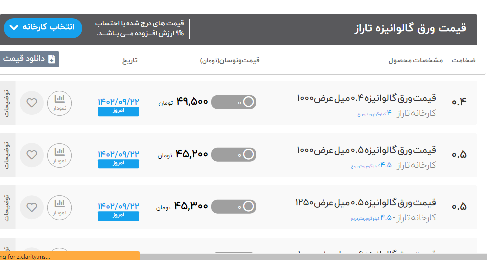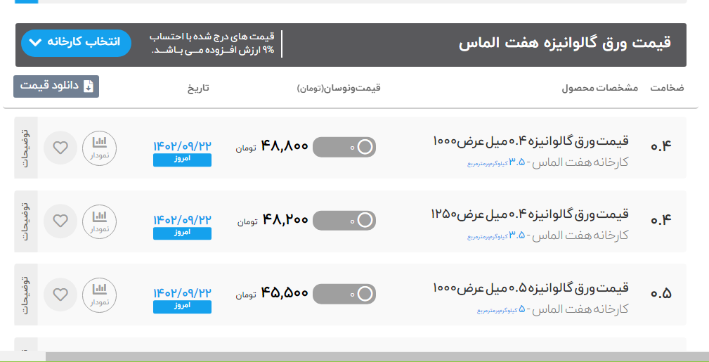 اعلام موجودی ورق گالوانیزه و رنگی