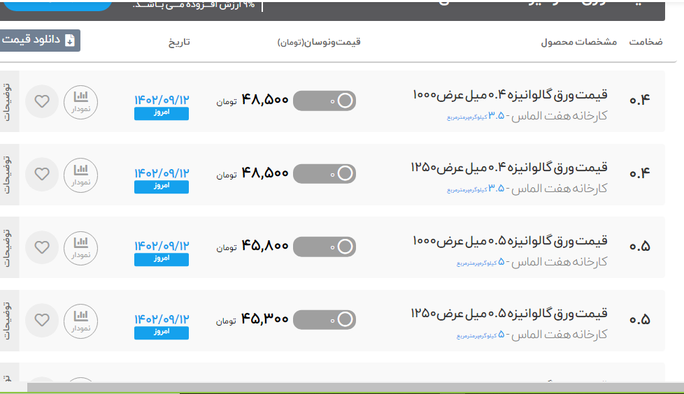 🔺 ورق رنگی موجود هست ♨️ ورق روغنی موجود هست 🔺 ورق گالوانیزه از ضخامت 0/30 الی 3/5 موجود هست #تهران_گالوانیزه_برنا 🔺 برند های کاشان، ورق خودرو، تاراز، دشتستان، شهریار، روی اندود و هفت الماس موجود هستند. 🔺 فروش ویژه کالاهای زیر: 0/70 عرض 1100 شهرکرد 0/75 عرض 1250 الماس 1/05 عرض 1200 شهرکرد 1/47 عرض 1130 شهرکرد 1/47 عرض 1170 شهرکرد #جهت_مشاهده_پروفایل_تهران_گالوانیزه_برنا👇🏻 🔸https://foolad24.com/profile/15739 #جهت_مشاهده_اعلام_موجودی_تهران_گالوانیزه_برنا👇🏻 https://foolad24.com/profile/15739/inventory 👈🏻راه های ارتباطی با ما : ☎️ ۵۷۶۰۲ (۳۰خط) 🌐www.ahan.shop 🆔instagram (https://instagram.com/ahanshop) 📧@TGBorna
