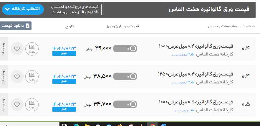 اعلام موجودی ورق گالوانیزه و رنگی همراه فلز