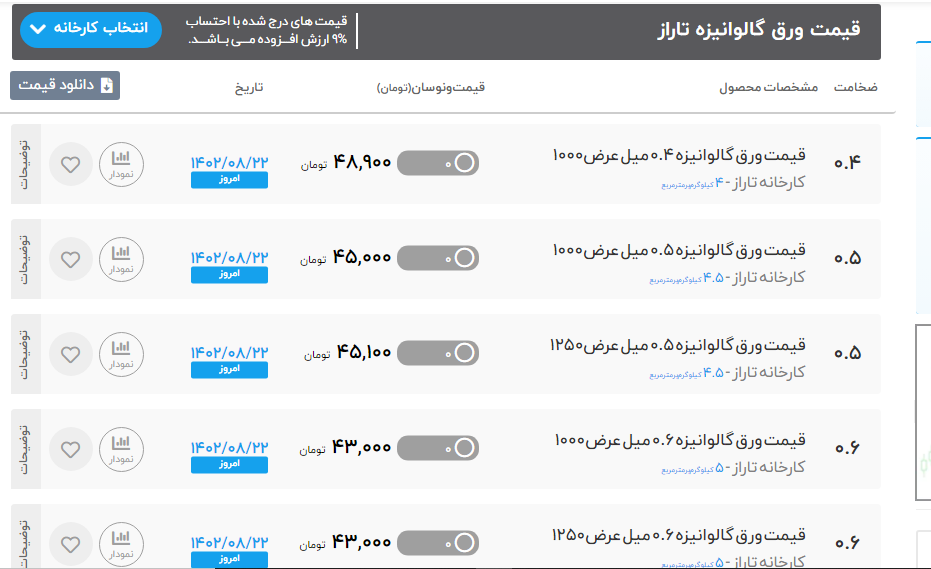 اعلام موجودی ورق گالوانیزه و رنگی