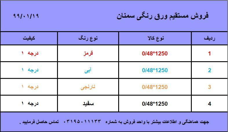 #ورق_گالوانیزه_سمنان #کارخانه ورق ۴۸ عرض ۱۲۵۰ ورق ۵۰ عرض ۱۲۵۰ ورق ۵۵ عرض ۱۲۵۰ ورق ۵۸ عرض ۱۲۵۰ ورق ۶۰ عرض ۱۲۵۰ ورق ۱ عرض ۱۲۵۰ ورق ۱.۲۵ عرض ۱۲۵۰ ورق ۱.۵۰ عرض ۱۲۵۰ برای اطلاع از قیمت با دفتر تماس حاصل فرمایید. 02122760068