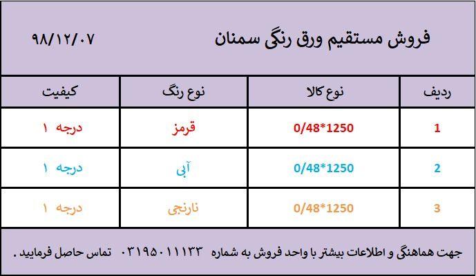 50*1250 فولاد مبارکه قرمز /قهوه ای /آبی /سفید استعلام قیمت 09013413036