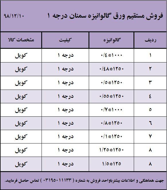 ۰.۸ عرض ۱۰۰۰ گالوانیزه درجه یک فولاد مبارکه تک رول اصفهان