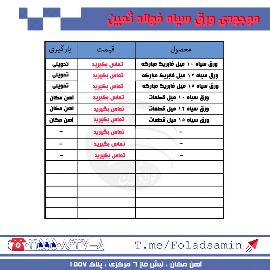 #ورق_فولاد_مبارکه #انبار_تهران ورق ۶ میل ۶*۱.۵ A283# ورق ۸ میل ۶*۱.۵ A283# ورق ۱۰ میل ۶*۱.۵ A283# ورق ۱۲ میل ۶*۱.۵ A283# ورق ۱۵ میل ۶*۱.۵ A283# برای اطلاع از قیمت با دفتر تماس حاصل فرمایید. 02122760068
