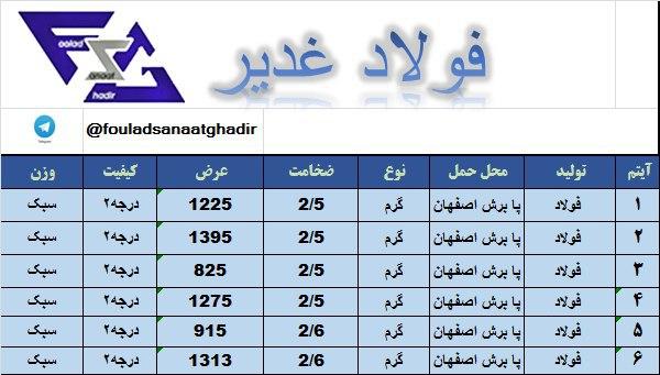 ورق2/5×1275فولادst33 ورق3/5×1205فولادst33 ورق2/75×1250پابرش سباst37 ورق4×1250پابرش سباst37 ورق5×1500پابرش سباو فولادst37 ورق6×1500پابرش سباوفولادst37 ورق2/5×1250پابرش سباst37