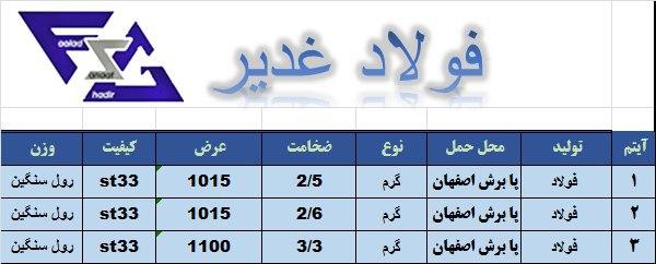 ورق روغني مباركه ضخامت ٠/٧٠ عرض ١٠٠ St12 آبي تهران ورق روغني مباركه ضخامت ٠/٥٠ عرض ١٠٠ St12 آبي تهران ورق روغني الماس ضخامت ٠/٥٠ عرض ١٠٠ St12 تبريز ورق روغني مباركه ضخامت ٠/٨٠ عرض ١٢٣ St14 ظرفيت تبريز
