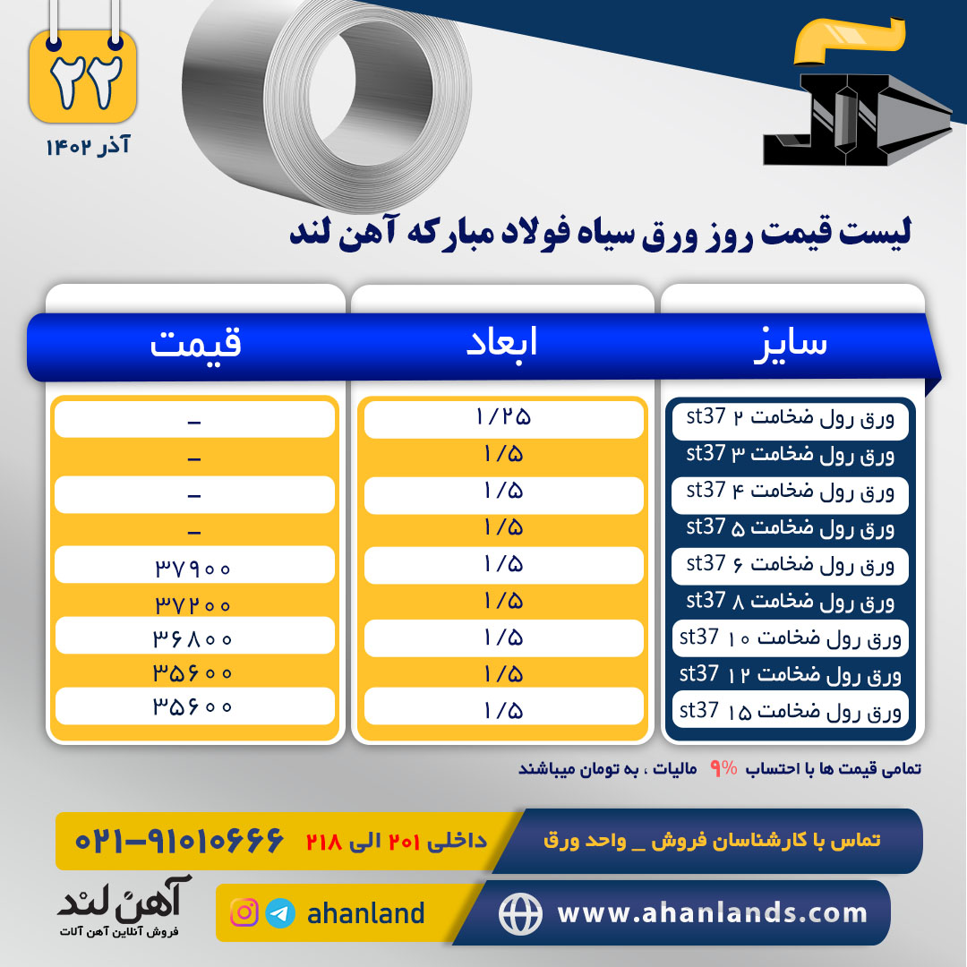 ✳️بازرگانی #شادلو 🔹فروش تخصصی انواع ورق های سیاه : ST37 🔸انواع ورق آلیاژی با پلاک و به شرط آنالیز: A516_A283_A36_ST52 🔹انواع روغنی: ST12_ST13_St14 🔸فروش و تامین انواع میلگرد 💠ورق اکسین A516 ✅ضخامتهای 18 الی 24 میل با ابعاد 4 متر در 12 متر موجود در تهران 💠ورق A283 اکسین انبار اهواز ✅ضخامتهای 12 الی 100میل 💠ورق A516 گرید 70 ✅ضخامتهای 5 الی 15 ابعاد 6 * 1/5 💠ورق ST52 ✅ضخامتهای 3 الی 15 ابعاد 6 * 1/5 💠 ورق دریایی a36 ✅ضخامتهای 3 الی 15 ابعاد 6 * 1/5 ✅ضخامتهای 10 الی 40 ابعاد 6 * 2 تمامی ورق های آلیاژی A516 و ST52 و A283 به صورت رول پابرش و برگی در اصفهان موجود میباشد. کلیه بارها به شرط آنالیز و سرتیفیکیت میباشد. #جهت_مشاهده_پروفایل_بازرگانی_شادلو👇🏻 📌https://foolad24.com/profile/14075 #جهت_مشاهده_اعلام_موجودی_بازرگانی_شادلو https://foolad24.com/profile/14075/inventory 021-77710933 021-77868391 021-77740933 021-77740934 021-77741051 ☎️ 09121115855 🆔 https://t.me/ahanshadlou 🌐 www.ahanshadlou.com