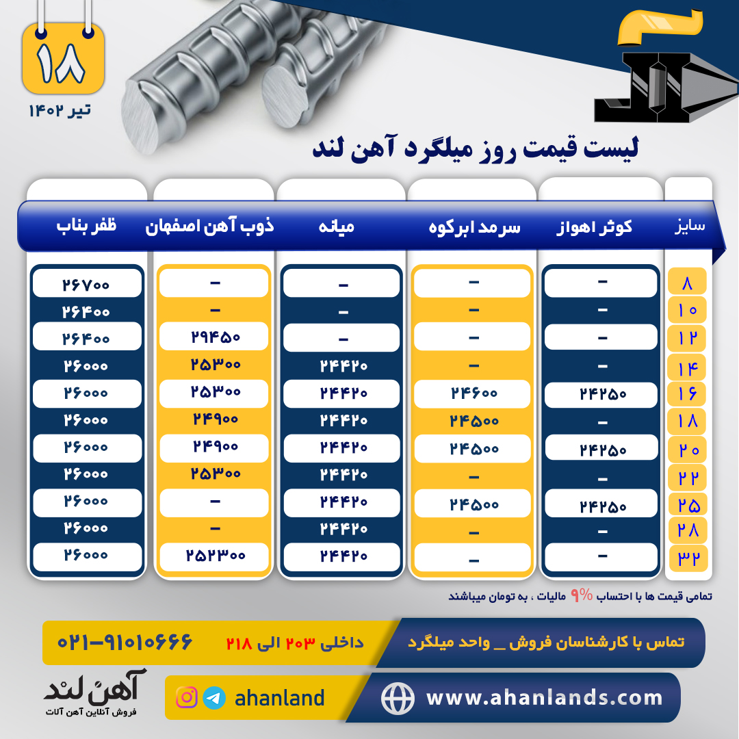 📆1402/4/17میلگرد ساده mo40 روهینا جنوب 1.7225 موجود در انبار شادآبادمیلگرد سایز 20=فی 480.000 میلگرد سایز 22=فی 480.000 میلگرد سایز 28=اتمام موجودی میلگرد سایز 30=فی اتمام موجودی میلگرد سایز 32=فی 480.000 میلگرد سایز 40=فی 480.000 میلگرد سایز 45=فی 480.000 میلگرد سایز 50=فی 480.000به شرط رزوه کشش خم ☎️ 021_66138001_6 اخوان آرزومند