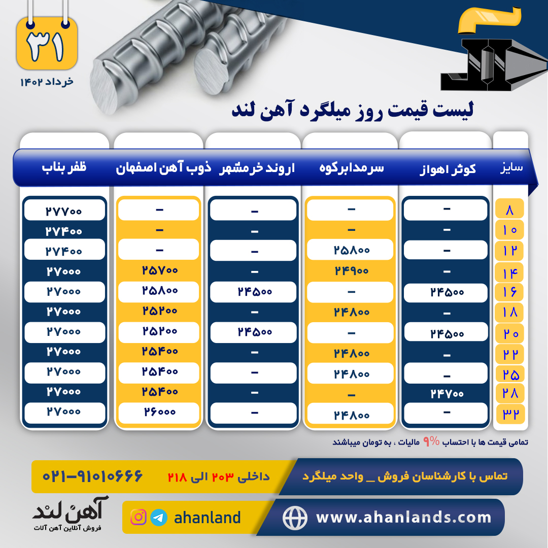 📆1402/3/29میلگرد ساده mo40 روهینا جنوب 1.7225 موجود در انبار شادآبادمیلگرد سایز 20=فی 480.000 میلگرد سایز 22=فی 480.000 میلگرد سایز 28=اتمام موجودی میلگرد سایز 30=فی 480.000 میلگرد سایز 32=فی 480.000 میلگرد سایز 40=فی 480.000 میلگرد سایز 45=فی 480.000 میلگرد سایز 50=فی 480.000به شرط رزوه کشش خم ☎️ 021_66138001_6 اخوان آرزومند