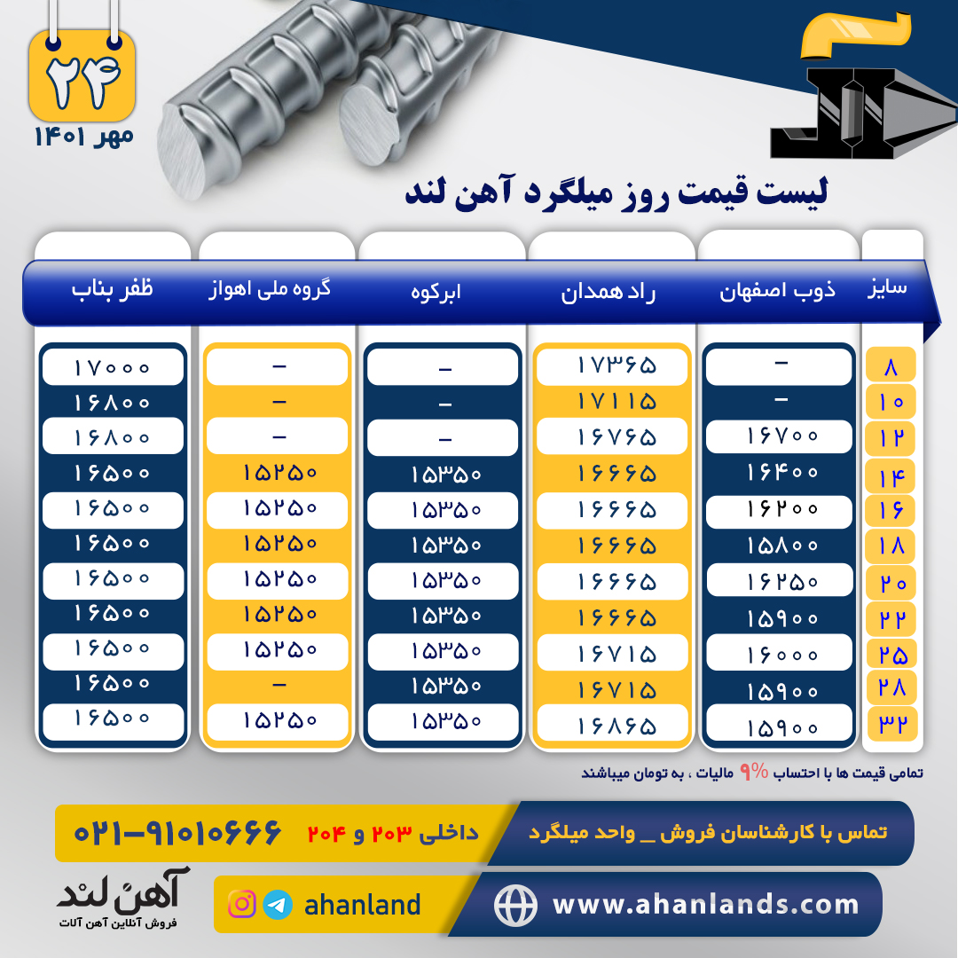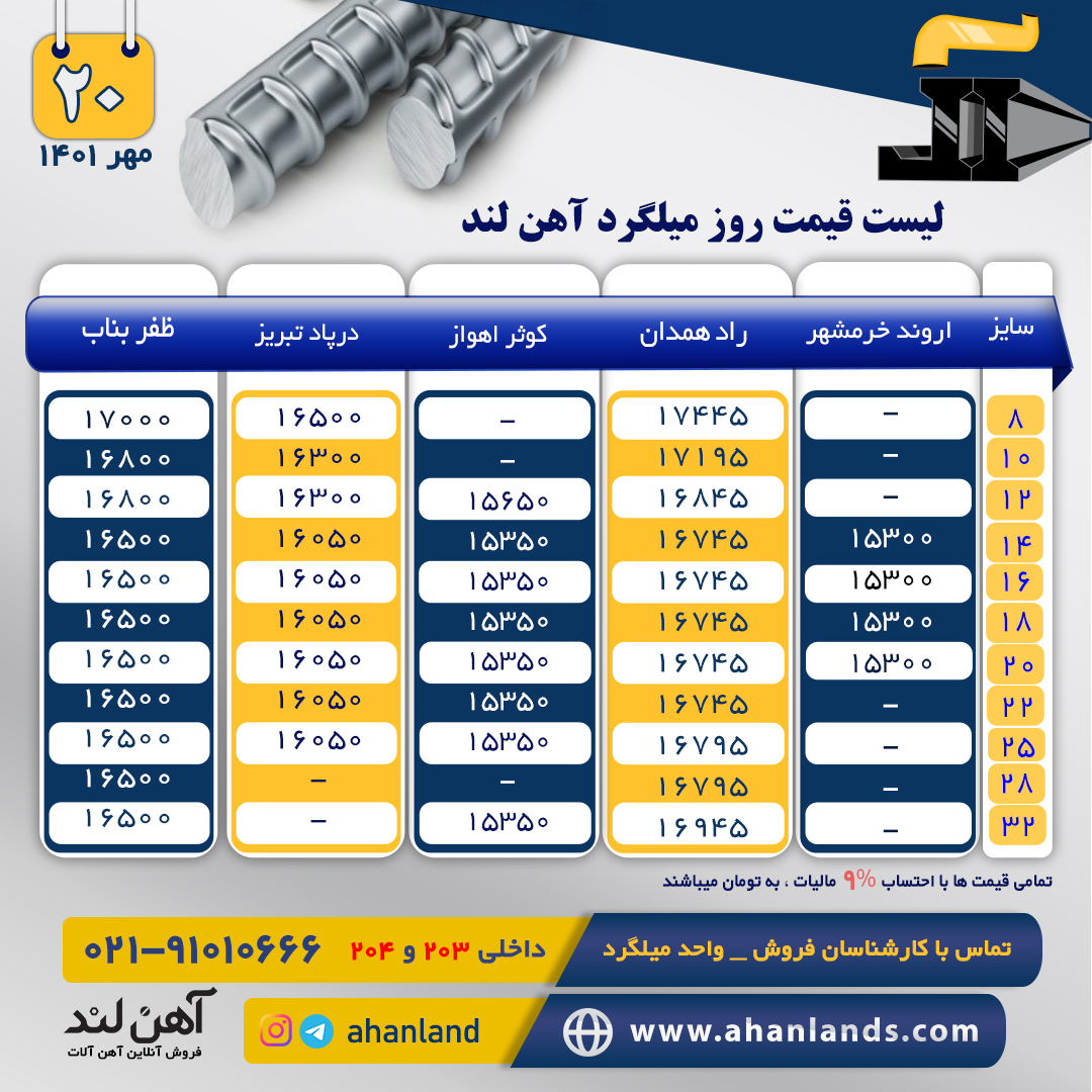 صورت بار فلزات آلیاژی لیست قیمت بیستم مهرماه ۱۴۰۱ برای مشاهده آنلاین قیمت انواع مقاطع فولادی به وب سایت زیر مراجعه نمایید: WWW.AHANLANDS.COM ⚜اعتماد شما اعتبار ماست⚜ ارتباط با کارشناسان ما: https://zil.ink/ahanland 📍آدرس اینستاگرام آهن لند https://lnkd.in/d۴epHFt