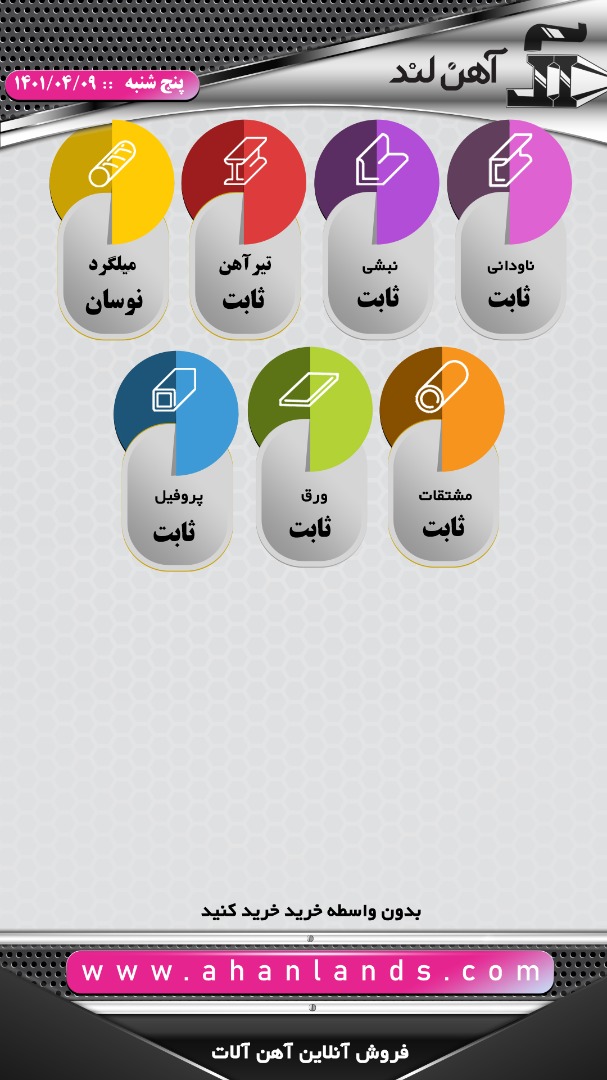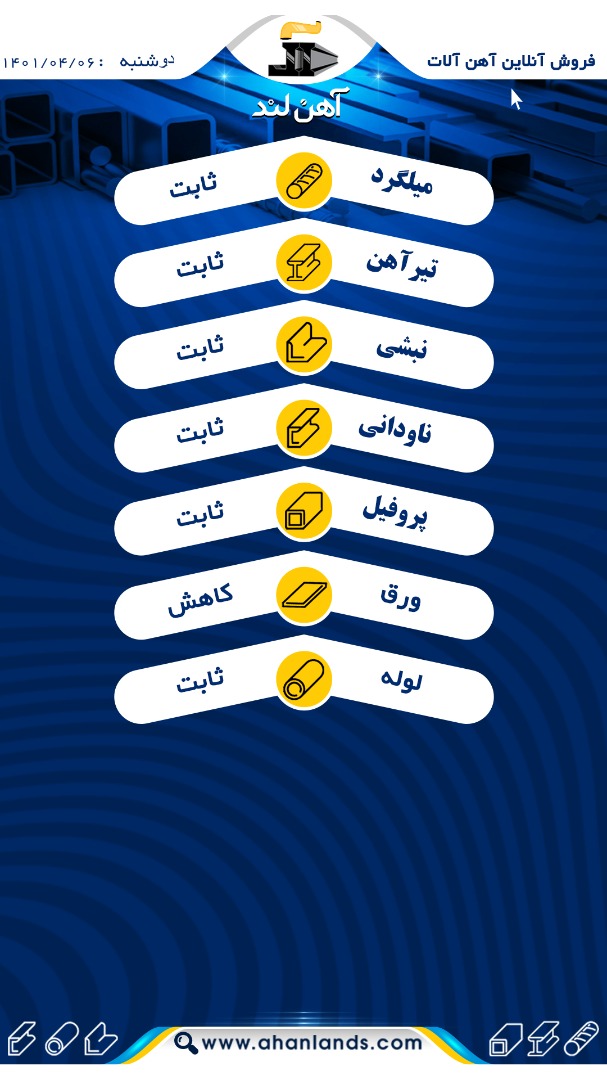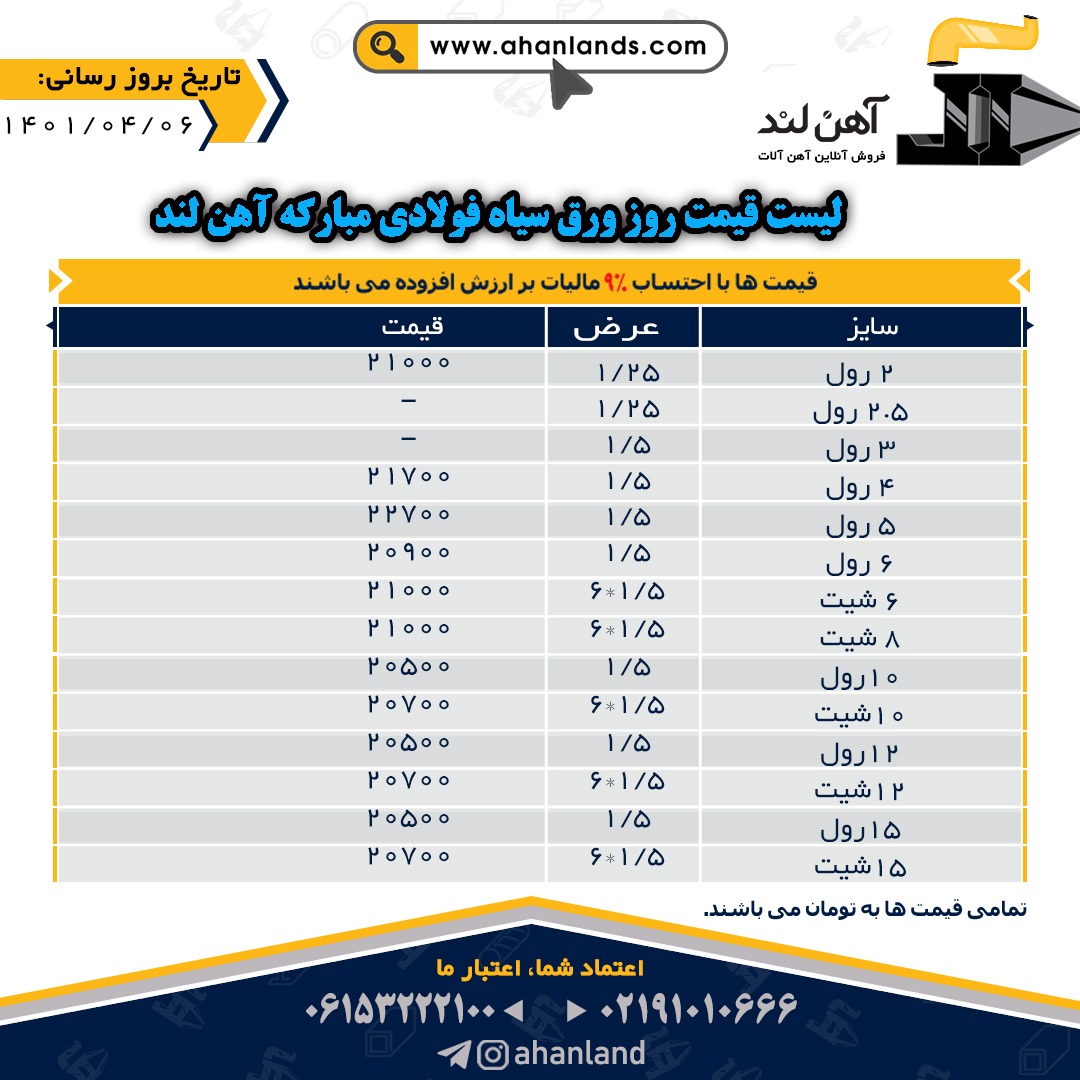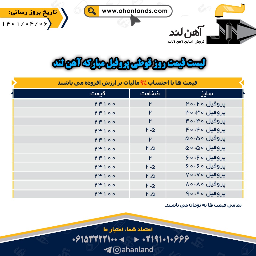لیست قیمت ششم تیر ۱۴۰۱ برای مشاهده آنلاین قیمت انواع مقاطع فولادی به وب سایت زیر مراجعه نمایید: WWW.AHANLANDS.COM ⚜اعتماد شما اعتبار ماست⚜ ارتباط با کارشناسان ما: https://zil.ink/ahanland 📍آدرس اینستاگرام آهن لند https://lnkd.in/d۴epHFt