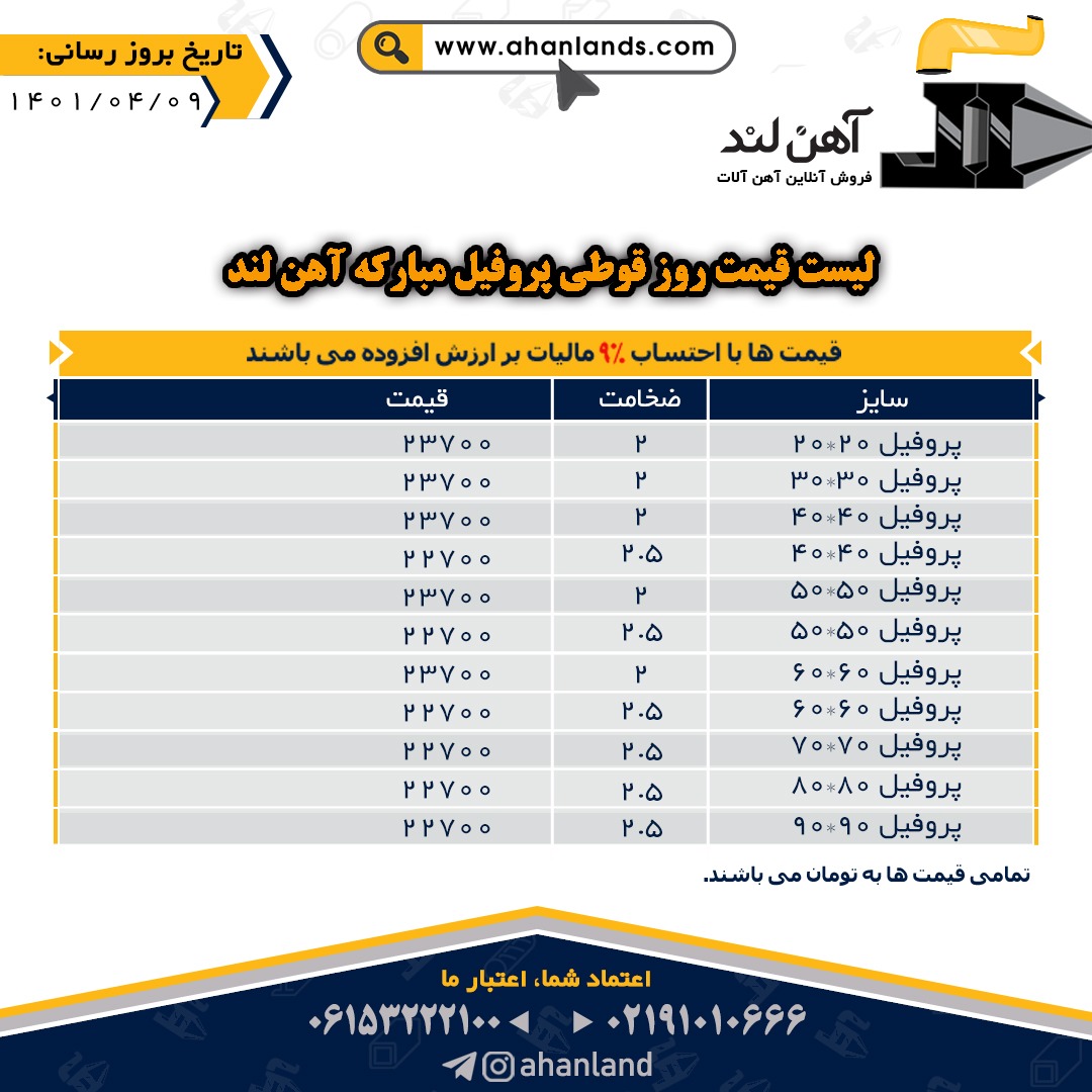 لیست قیمت نهم تیر ۱۴۰۱ برای مشاهده آنلاین قیمت انواع مقاطع فولادی به وب سایت زیر مراجعه نمایید: WWW.AHANLANDS.COM ⚜اعتماد شما اعتبار ماست⚜ ارتباط با کارشناسان ما: https://zil.ink/ahanland 📍آدرس اینستاگرام آهن لند https://lnkd.in/d۴epHFt