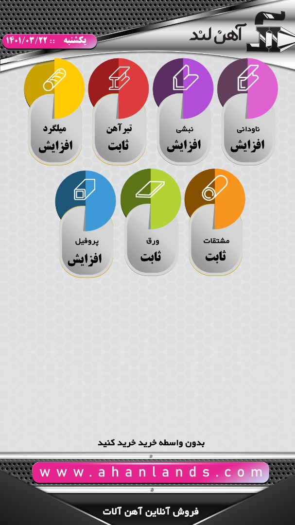 لیست قیمت بیست و دوم خرداد ۱۴۰۱ برای مشاهده آنلاین قیمت انواع مقاطع فولادی به وب سایت زیر مراجعه نمایید: WWW.AHANLANDS.COM ⚜اعتماد شما اعتبار ماست⚜ ارتباط با کارشناسان ما: https://zil.ink/ahanland 📍آدرس اینستاگرام آهن لند https://lnkd.in/d۴epHFt