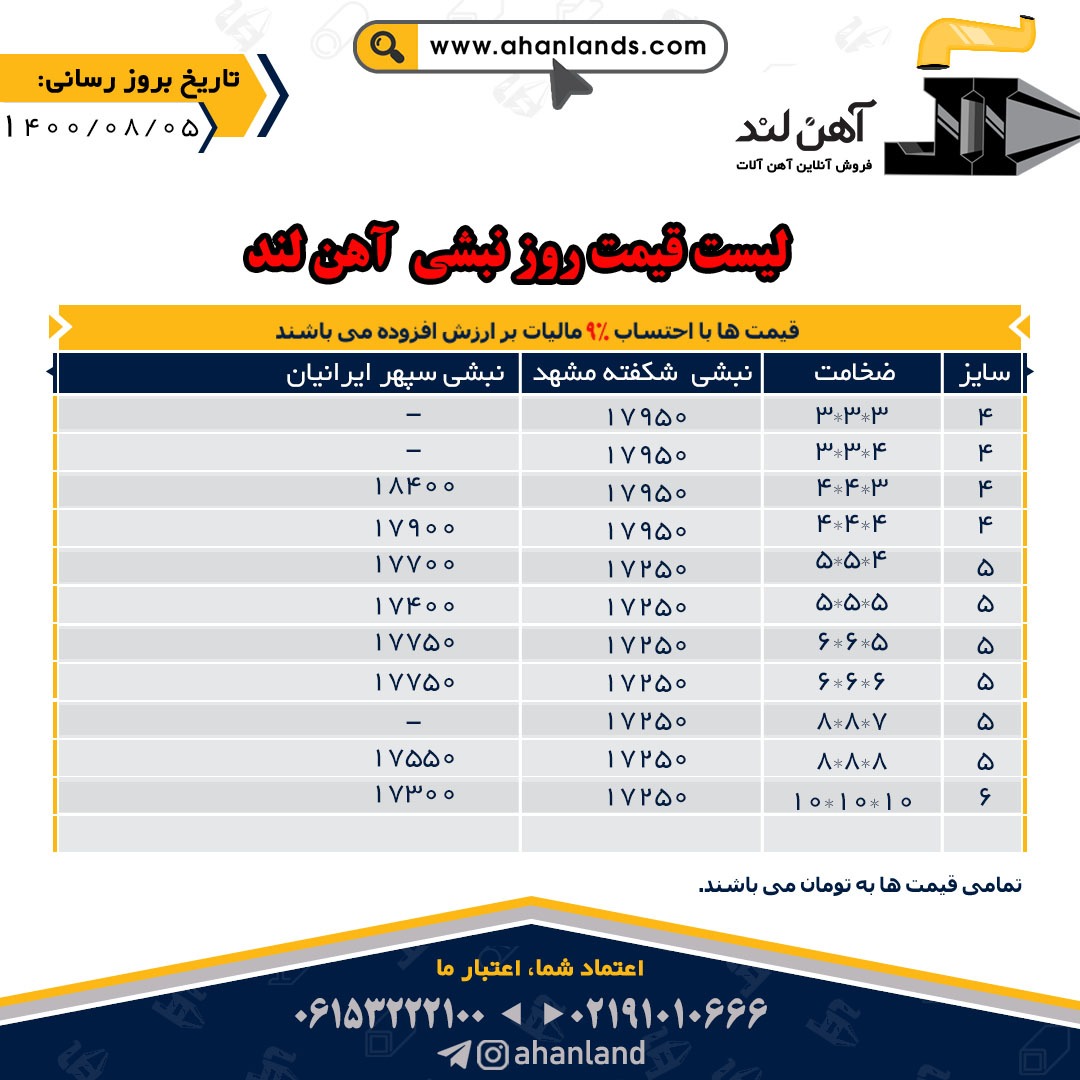 لیست قیمت چهارم آبان ماه ۱۴۰۰ برای مشاهده آنلاین قیمت انواع مقاطع فولادی به وب سایت زیر مراجعه نمایید: WWW.AHANLANDS.COM ⚜اعتماد شما اعتبار ماست⚜ ارتباط با کارشناسان ما: https://zil.ink/ahanland 📍آدرس اینستاگرام آهن لند https://lnkd.in/d۴epHFt