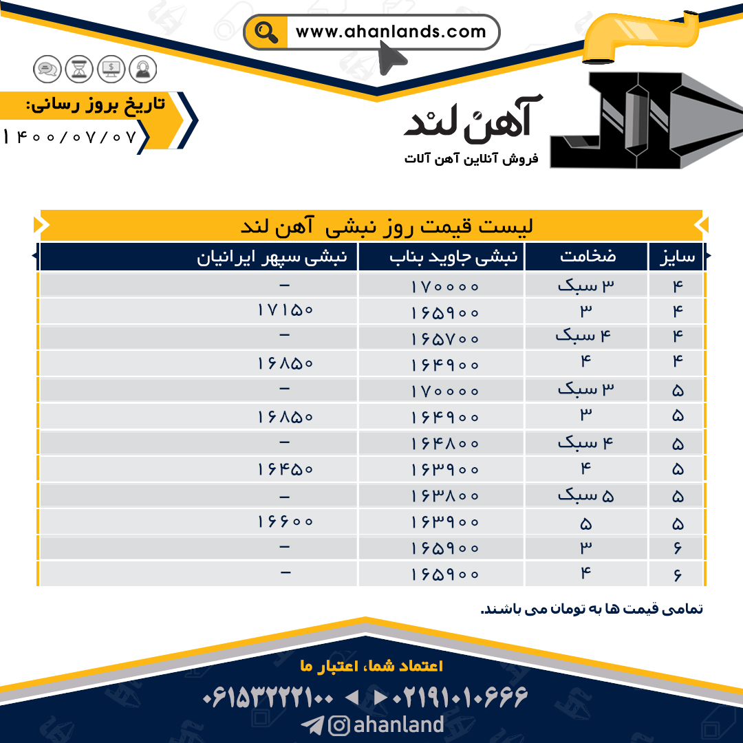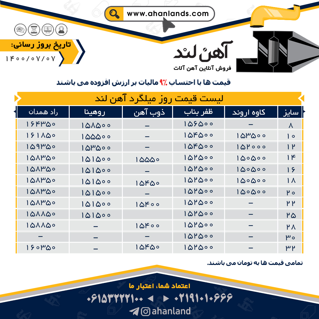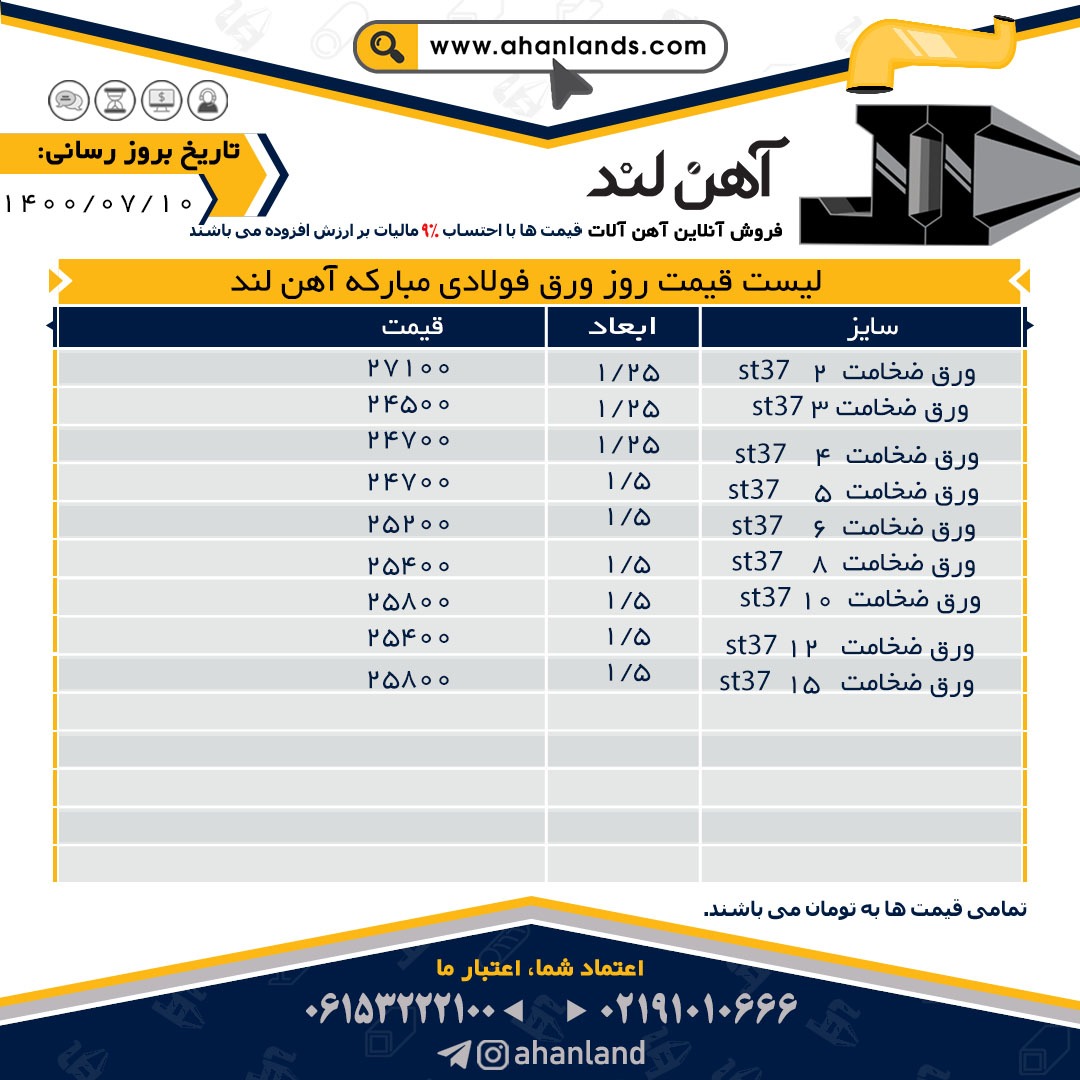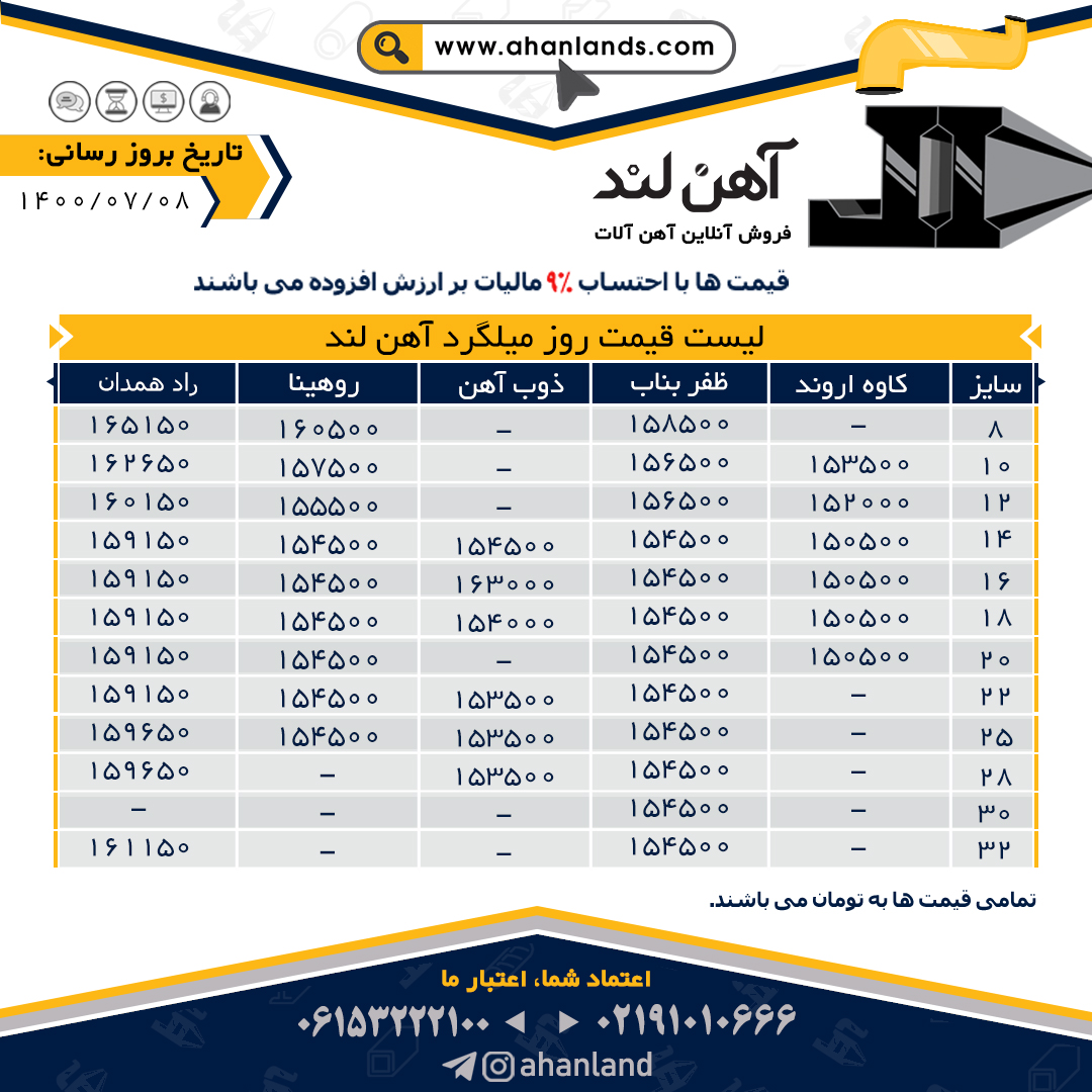 لیست قیمت دهم مهر ماه ۱۴۰۰ برای مشاهده آنلاین قیمت انواع مقاطع فولادی به وب سایت زیر مراجعه نمایید: WWW.AHANLANDS.COM ⚜اعتماد شما اعتبار ماست⚜ ارتباط با کارشناسان ما: https://zil.ink/ahanland 📍آدرس اینستاگرام آهن لند https://lnkd.in/d۴epHFt