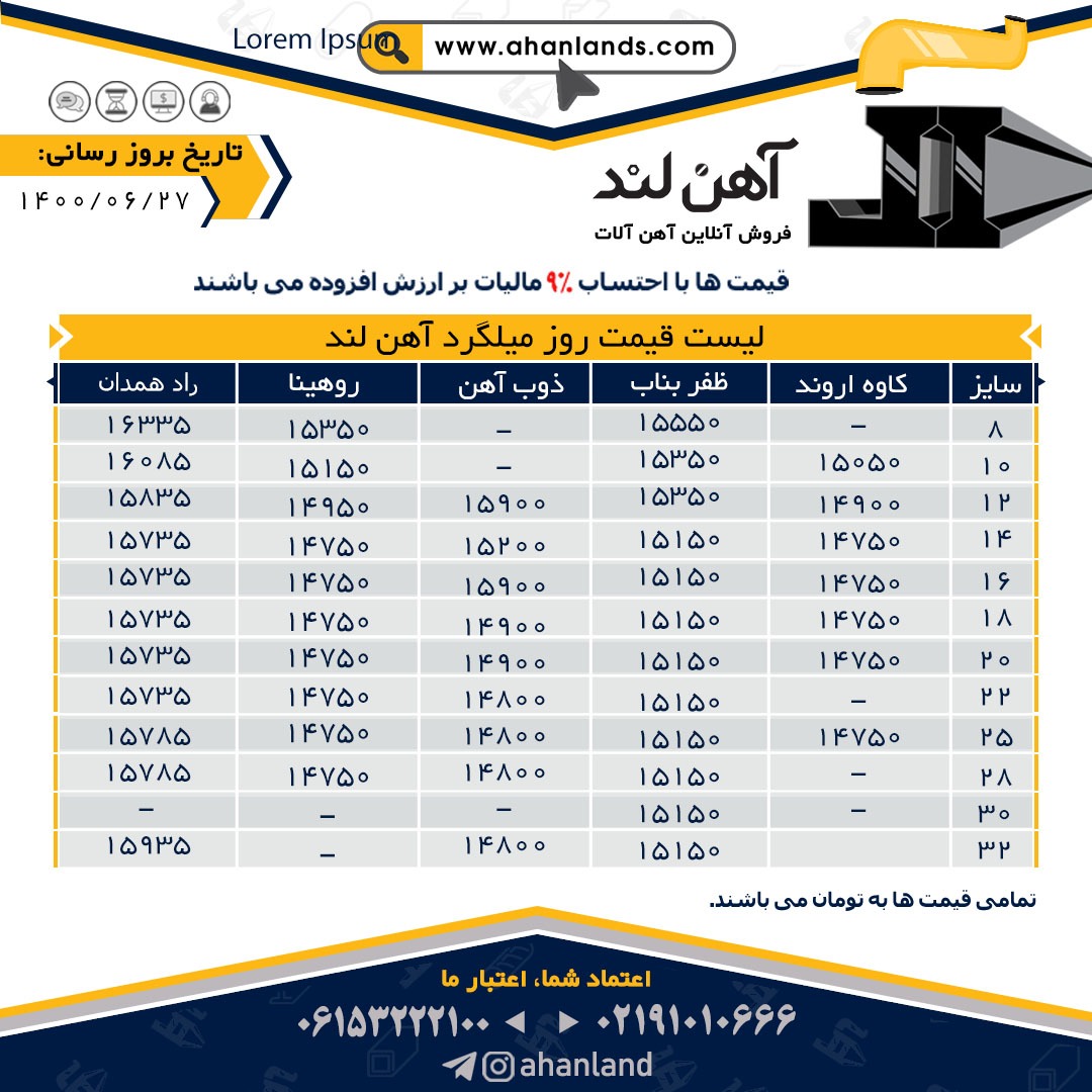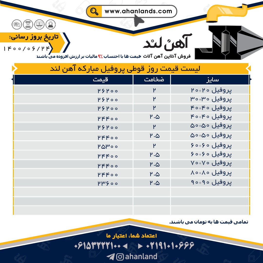 لیست قیمت بیست و چهارم شهریور ماه ۱۴۰۰ برای مشاهده آنلاین قیمت انواع مقاطع فولادی به وب سایت زیر مراجعه نمایید: WWW.AHANLANDS.COM ⚜اعتماد شما اعتبار ماست⚜ ارتباط با کارشناسان ما: https://zil.ink/ahanland 📍آدرس اینستاگرام آهن لند https://lnkd.in/d۴epHFt