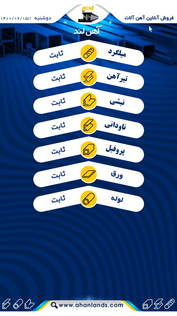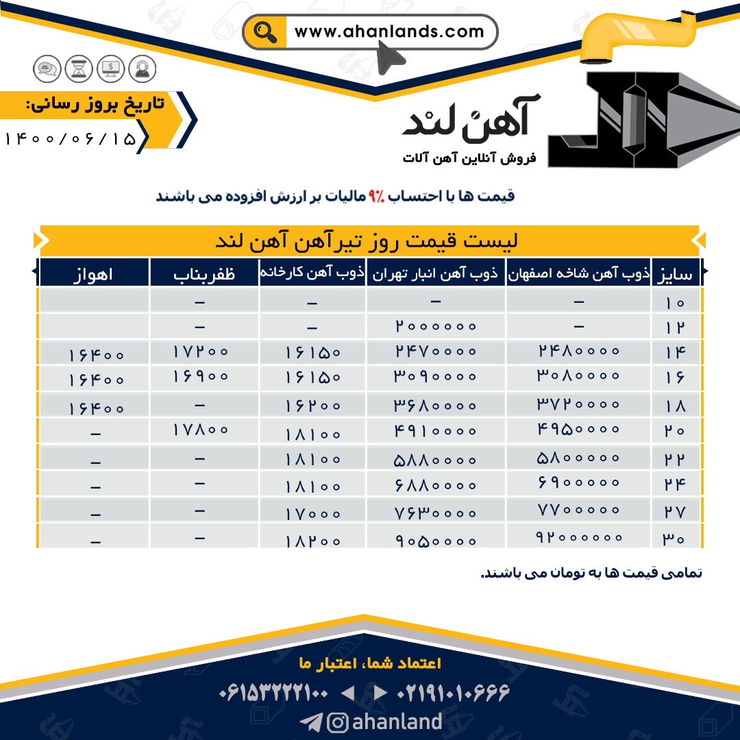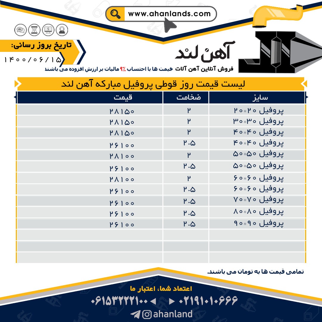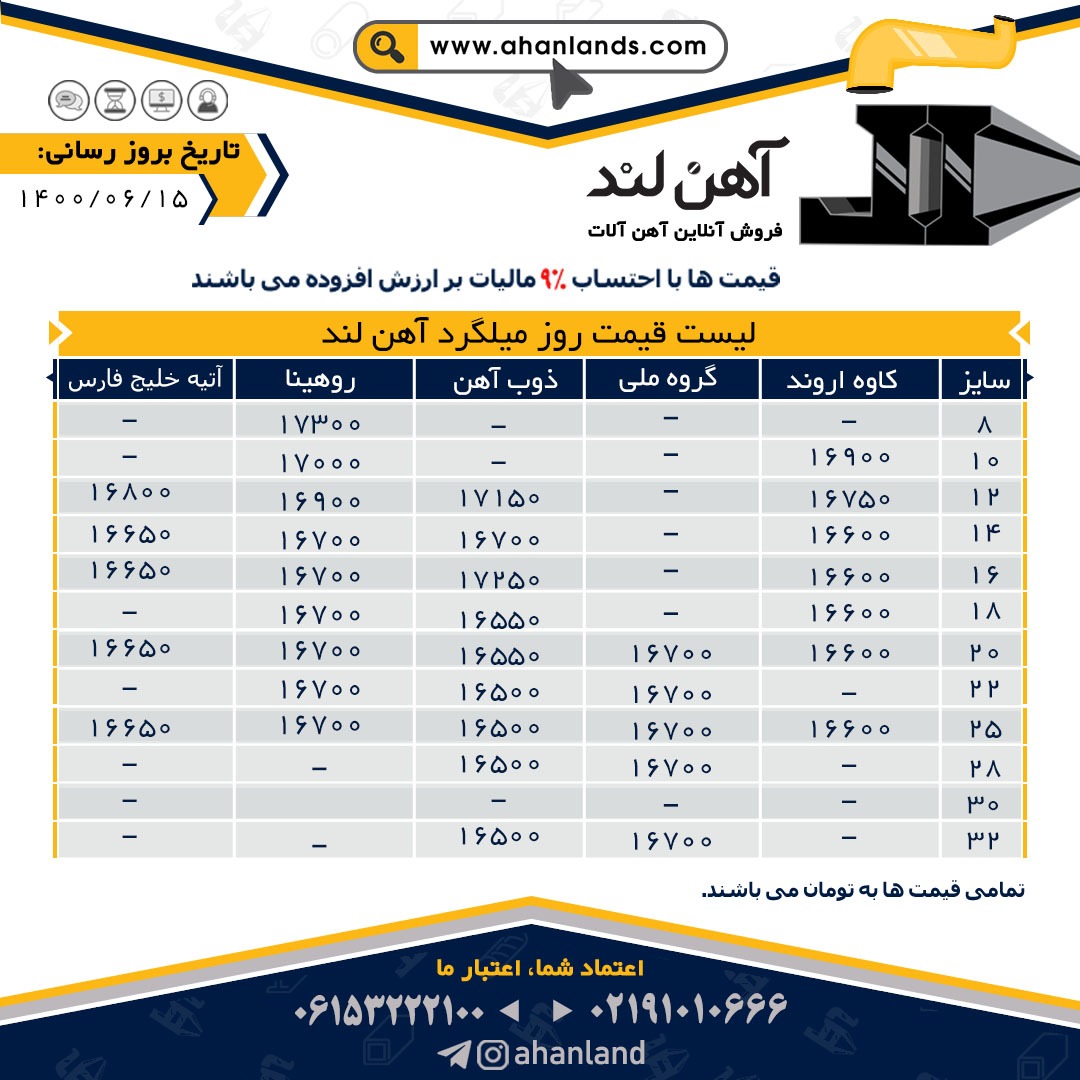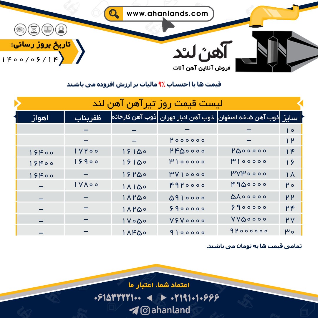 لیست قیمت چهاردهم شهریور ماه ۱۴۰۰ برای مشاهده آنلاین قیمت انواع مقاطع فولادی به وب سایت زیر مراجعه نمایید: WWW.AHANLANDS.COM ⚜اعتماد شما اعتبار ماست⚜ ارتباط با کارشناسان ما: https://zil.ink/ahanland 📍آدرس اینستاگرام آهن لند https://lnkd.in/d۴epHFt