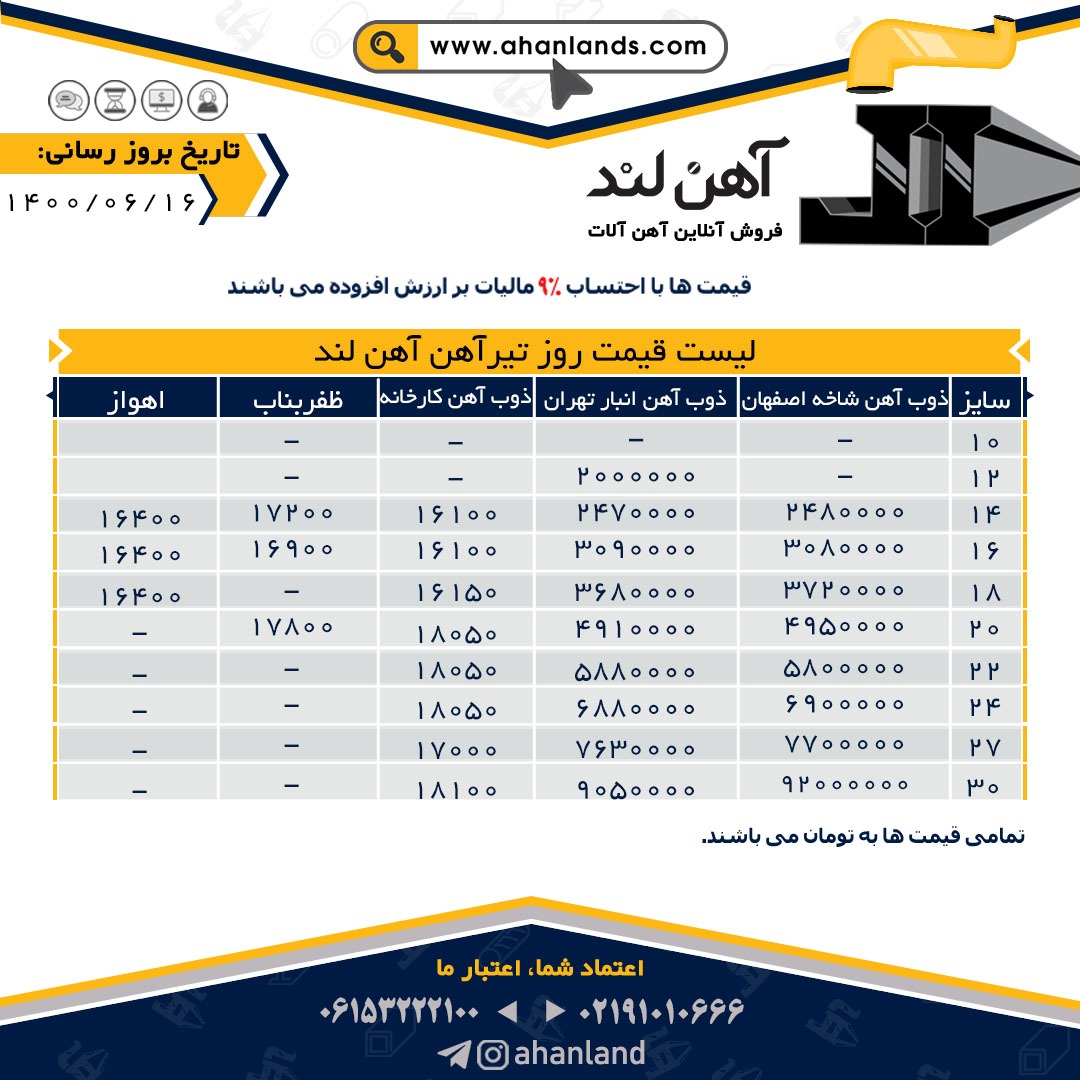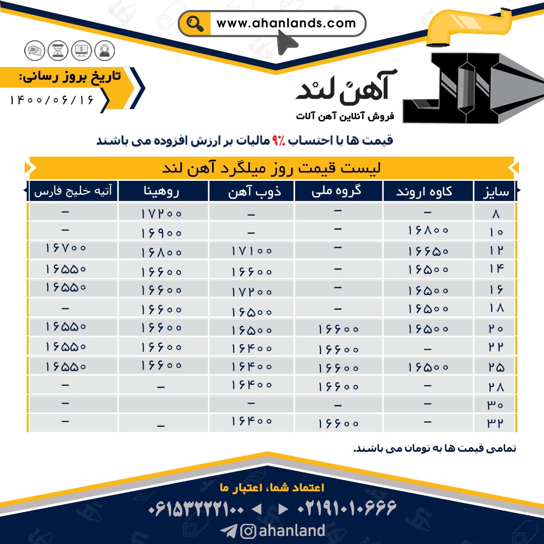 لیست قیمت شانزدهم شهریور ماه ۱۴۰۰ برای مشاهده آنلاین قیمت انواع مقاطع فولادی به وب سایت زیر مراجعه نمایید: WWW.AHANLANDS.COM ⚜اعتماد شما اعتبار ماست⚜ ارتباط با کارشناسان ما: https://zil.ink/ahanland 📍آدرس اینستاگرام آهن لند https://lnkd.in/d۴epHFt