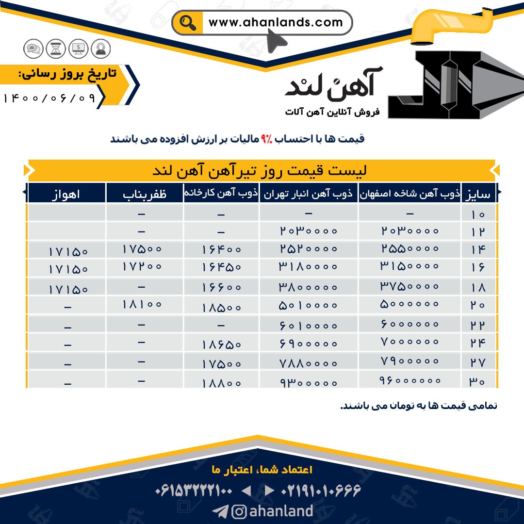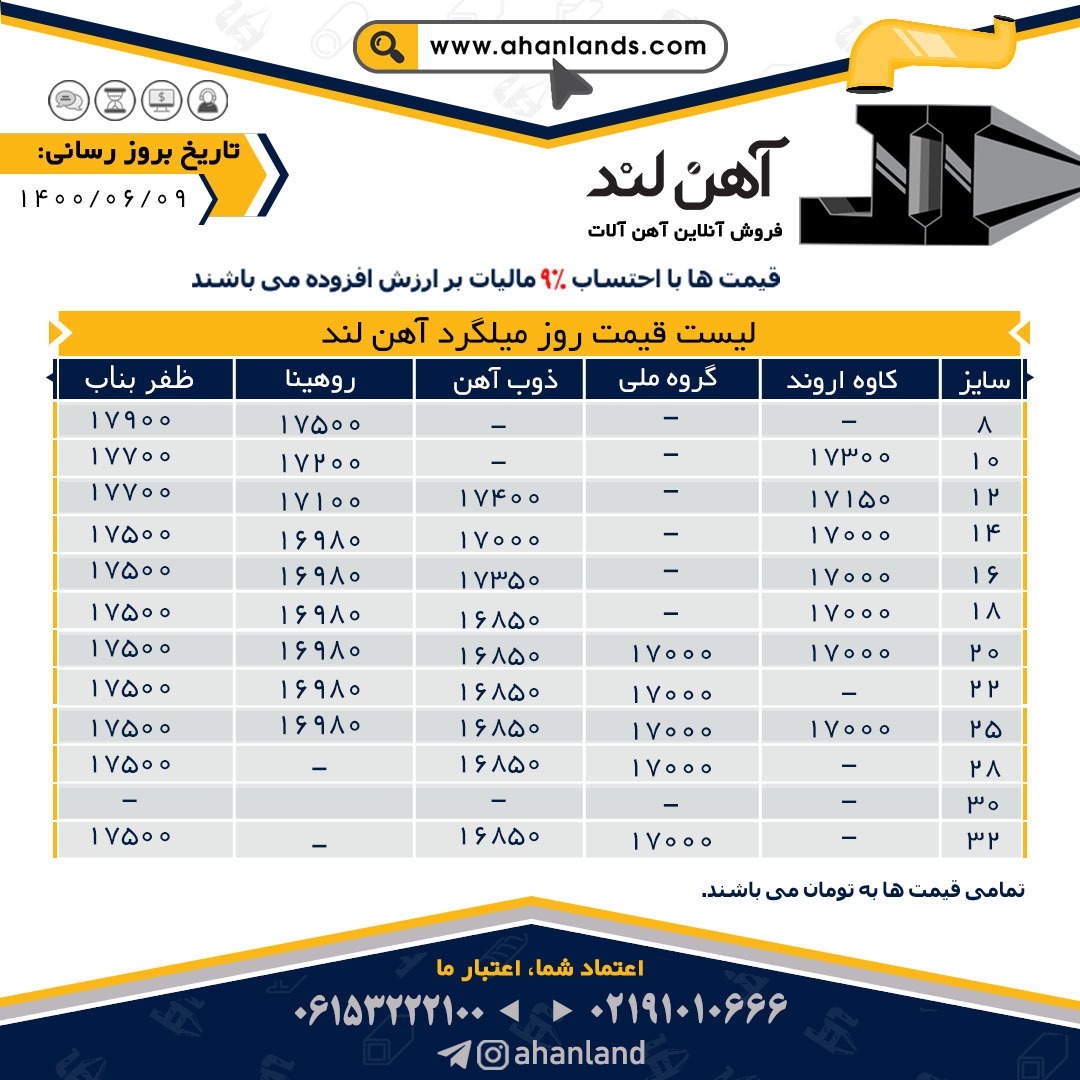 لیست قیمت نهم شهریور ماه ۱۴۰۰ برای مشاهده آنلاین قیمت انواع مقاطع فولادی به وب سایت زیر مراجعه نمایید: WWW.AHANLANDS.COM ⚜اعتماد شما اعتبار ماست⚜ ارتباط با کارشناسان ما: https://zil.ink/ahanland 📍آدرس اینستاگرام آهن لند https://lnkd.in/d۴epHFt