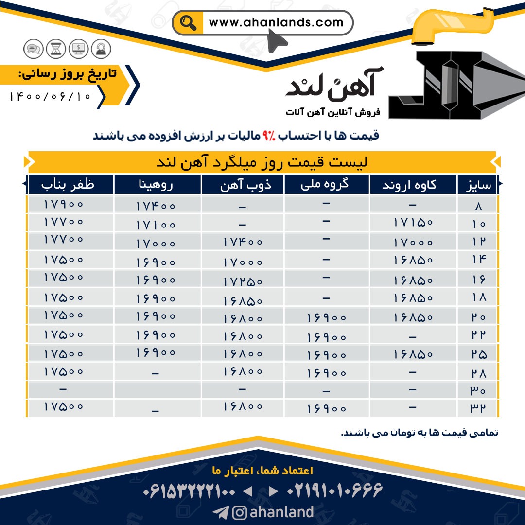 لیست قیمت دهم شهریور ماه ۱۴۰۰ برای مشاهده آنلاین قیمت انواع مقاطع فولادی به وب سایت زیر مراجعه نمایید: WWW.AHANLANDS.COM ⚜اعتماد شما اعتبار ماست⚜ ارتباط با کارشناسان ما: https://zil.ink/ahanland 📍آدرس اینستاگرام آهن لند https://lnkd.in/d۴epHFt