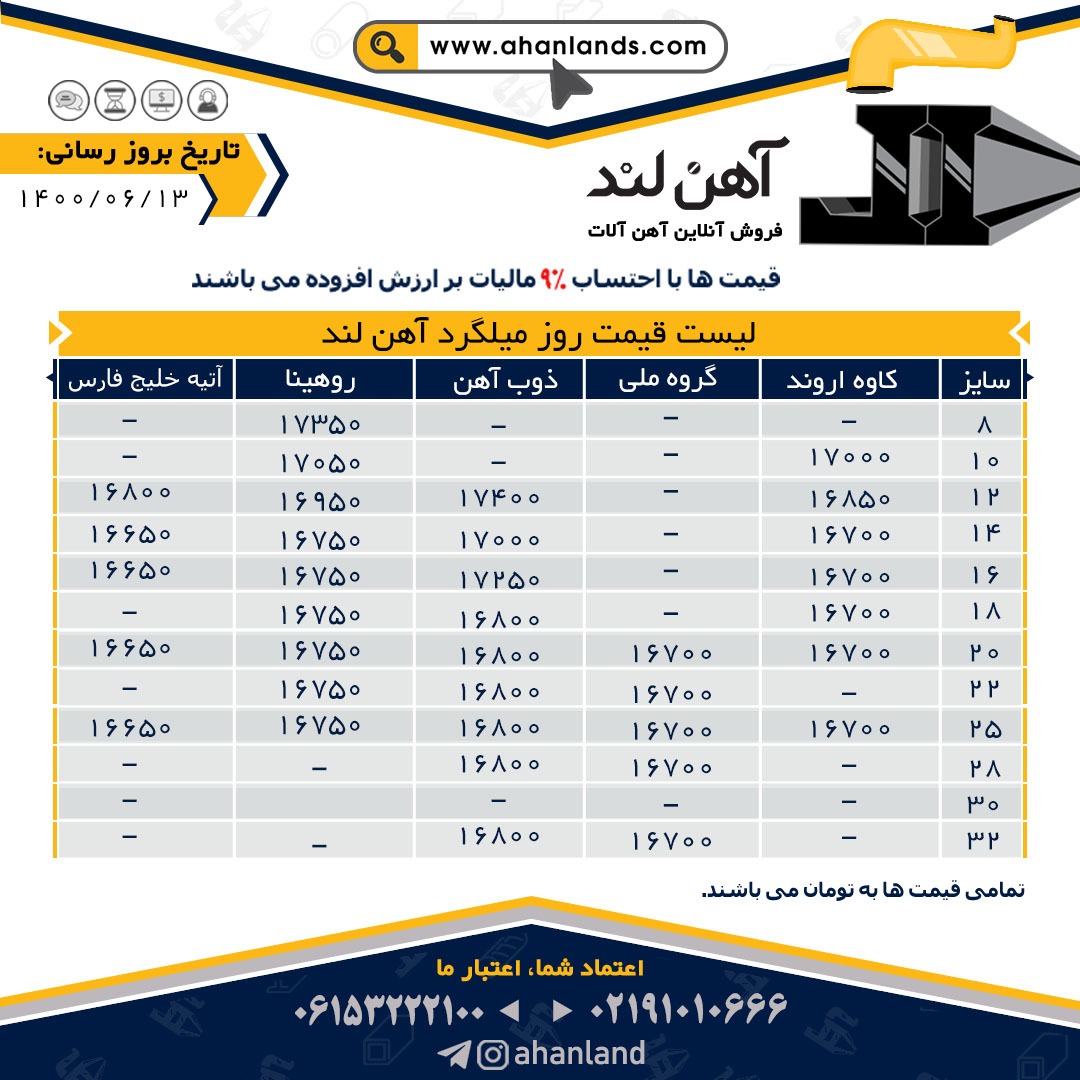 لیست قیمت سیزدهم شهریور ماه ۱۴۰۰ برای مشاهده آنلاین قیمت انواع مقاطع فولادی به وب سایت زیر مراجعه نمایید: WWW.AHANLANDS.COM ⚜اعتماد شما اعتبار ماست⚜ ارتباط با کارشناسان ما: https://zil.ink/ahanland 📍آدرس اینستاگرام آهن لند https://lnkd.in/d۴epHFt
