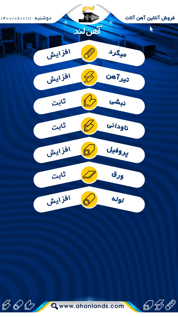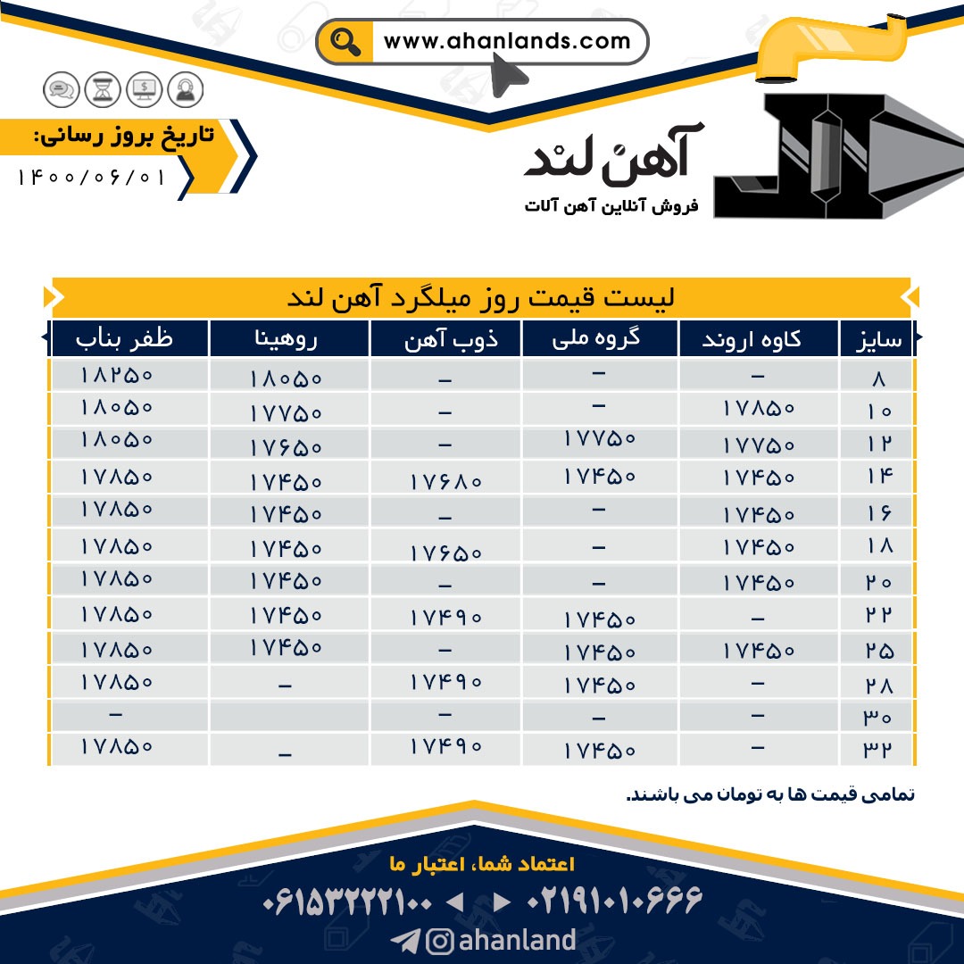 لیست قیمت یکم شهریور ماه ۱۴۰۰ برای مشاهده آنلاین قیمت انواع مقاطع فولادی به وب سایت زیر مراجعه نمایید: WWW.AHANLANDS.COM ⚜اعتماد شما اعتبار ماست⚜ ارتباط با کارشناسان ما: https://zil.ink/ahanland 📍آدرس اینستاگرام آهن لند https://lnkd.in/d۴epHFt