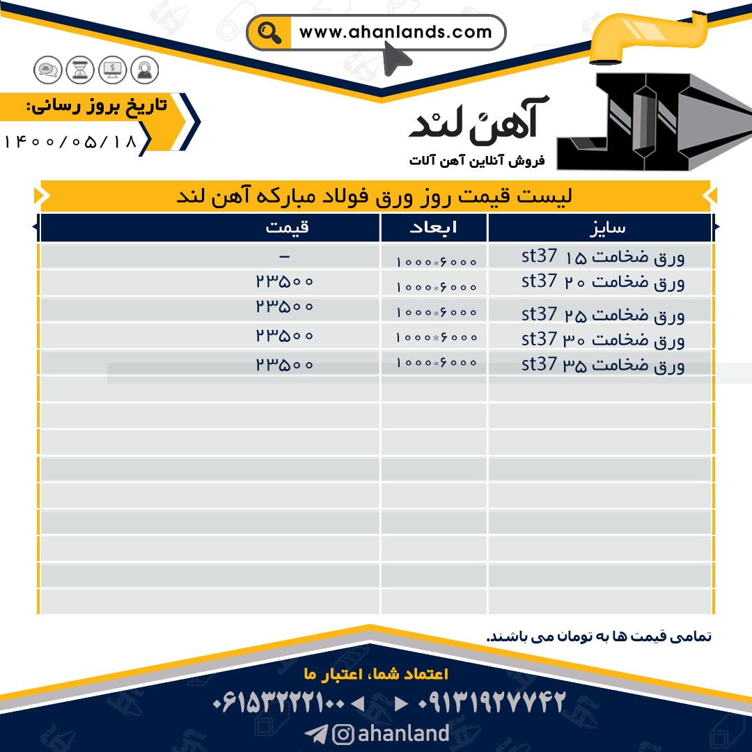 لیست قیمت هجدهم مردادماه ۱۴۰۰ برای مشاهده آنلاین قیمت انواع مقاطع فولادی به وب سایت زیر مراجعه نمایید: WWW.AHANLANDS.COM ⚜اعتماد شما اعتبار ماست⚜ ارتباط با کارشناسان ما: https://zil.ink/ahanland 📍آدرس اینستاگرام آهن لند https://lnkd.in/d۴epHFt
