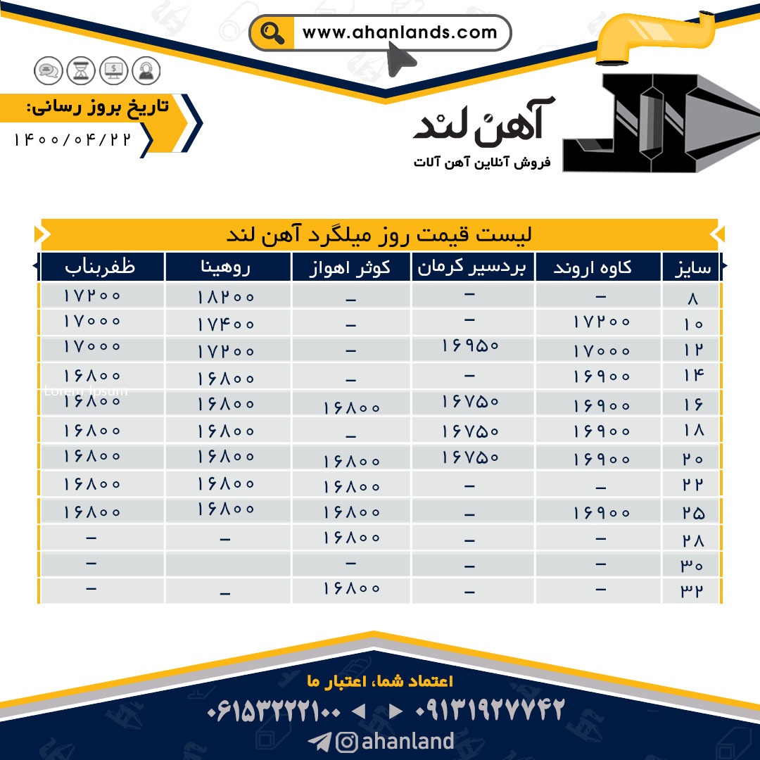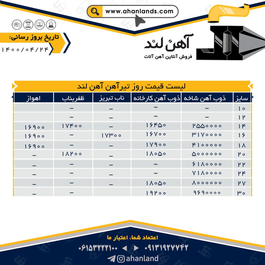 لیست قیمت بیست و چهارم تیرماه ۱۴۰۰ برای مشاهده آنلاین قیمت انواع مقاطع فولادی به وب سایت زیر مراجعه نمایید: WWW.AHANLANDS.COM ⚜اعتماد شما اعتبار ماست⚜ ارتباط با کارشناسان ما: https://zil.ink/ahanland 📍آدرس اینستاگرام آهن لند https://lnkd.in/d۴epHFt