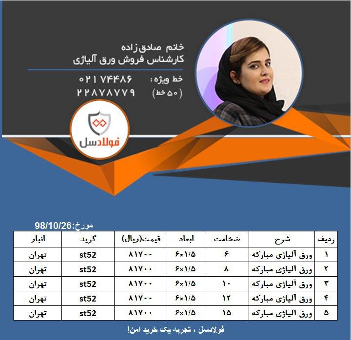 #ST52 ورق ST52 اکسین انبار تهران ورق 6000*2000*15 ورق 6000*2000*20 ورق 6000*2000*25 ورق 6000*2000*30 ورق 6000*2000*35 ورق 6000*2000*40 ورق 6000*2000*50 ورق 6000*2000*60 ورق 6000*2000*70 ورق 6000*2000*80 برش طبق درخواست شما صورت می پذیرد لطفا برای اطلاع از قیمت و موجودی تماس حاصل فرمایید