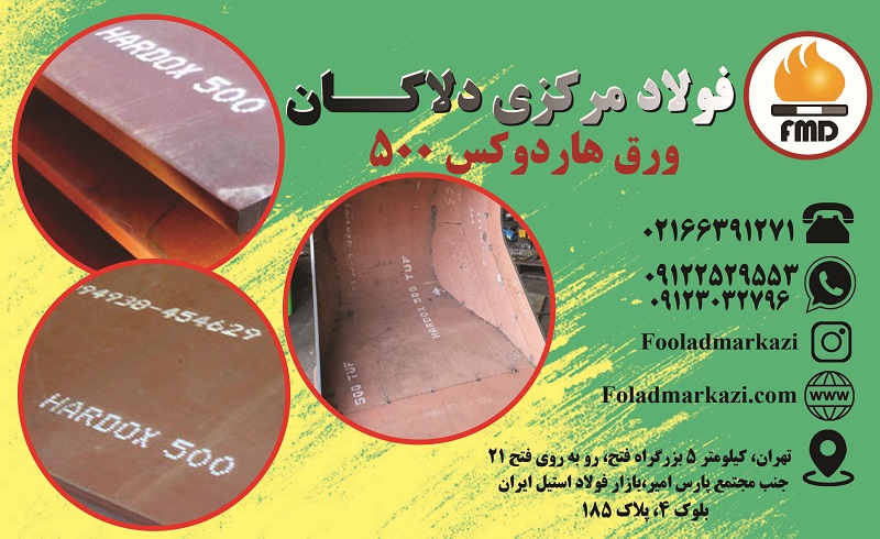 ورق هاردوکس 500، ورق ضد سایش، Hardox 500 ورق هاردوکس 500 با توجه به مقاومت خوبی که در برابر سایش دارد به ورق ضد سایش نیز معروف است. این ورق به ورق ضد سایش هاردوکس 500 نیز معروف است. شرکت SSAB در سوئد از جمله شرکت های معروف تولید کننده با برند هاردوکس Hardox است. دیگر شرکت مطرح در زمینه تولید ورق های ضد سایش شرکت وستالپین Voestalpineاتریش می باشد که برند ورقهای ضد سایش دورستات می باشد. در صنایع مختلف کاربرد گوناگون دارد. ترکیب شیمیایی ورق ضد سایش هاردوکس 500 به شرح زیر می باشد: C:0.3 Si: 0.4 Mn: 1.3 Cr: 2.2 Mo: 0.4 Ni: 2.0 کاربرد ورق ضد سایش هاردوکس 500: صنایع مهندسی مکانیک اتومبیل سازی قطعات سازی ماشین آلان معدن مشخصات ورق هاردوکس 500: سختی این فولاد 500 برینل می باشد، از فولاد های مقاوم به سایش در ماشین کاری، شکل دهی و جوشکاری استفاده می گردد. مقاومت کشش نهایی 1250 مگاپاسکال تنش تسلیم 1000 مگاپاسکال ضخامت ورق هاردوکس 500: معمولا این ورق از ضخامت 3 الی 40 میلیمتر در بازار موجود است. ابعاد 2*6 در بازار ایران موجود می باشد و برای ابعاد مورد نظر مشتری می تواند درخواست برشکاری بدهد. لطفا توجه داشته باشید که اطلاعات ارائه شده فوق جنبه اطلاعات عمومی دارد و مورد تایید نمی باشد و برای اطلاعات دقیق لطفا با کارشناسان ما تماس بگیرید. قیمت ورق هاردوکس 500: برای دریافت قیمت ورق Hardox لطفا با شماره های زیر تماس بگیرید: تلفن: 66791306 - 66797293 - 66789784 همراه: 09122529553 (مرتضی دلاکان) اینستاگرام:fooladmarkazi تلگرام : fooladmarkazi نشانی: تهران، کیلومتر 5 بزرگراه فتح، روبه روی فتح 21، جنب مجتمع تجاری پارس امیر، بازار فولاد استیل ایران، بلوک 4، پلاک 185