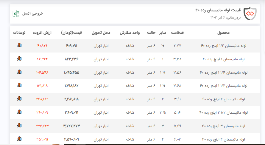 آذین سپهر الوند💫 #لوله مانیسمان 💯 🔴سایز1 اینچ رده20 برند وارداتی واحد شاخه 🔴سایز1/2 اینچ رده20 برندوارداتی واحدشاخه 🔴سایز3/4 اینچ رده20 برندوارداتی واحدشاخه 🔴سایز1/2 2 اینچ رده20 برندوارداتی واحدشاخه 🔴سایز2 اینچ رده20 برندوارداتی واحدشاخه 🔴سایز1/2 1 اینچ رده20 برندوارداتی واحدشاخه 🔴سایز3 اینچ رده20 برندوارداتی واحدشاخه 🔴سایز1/4 1 اینچ رده20 برندوارداتی واحدشاخه 🔴سایز4 اینچ رده20 برند وارداتی واحدشاخه 🔴سایز5 اینچ رده20 برندشوارداتی واحد شاخه 🔴سایز6 اینچ رده20 برندوارداتی واحدشاخه 🔴سایز8 اینچ رده20 برندوارداتی واحدشاخه ❗به دلیل نوسانات بازار برای تایید موجودی و قیمت وثبت سفارش تماس بگیرید❗ کانال تلگرام 🤳 https://t.me/azinsepehralvand سایت🌐 www.azinsepehrco.com ☎️☎️☎️☎️☎️☎️ 📞09132381828 📞09394117828 📞03152467528 https://t.me/azinsepehralv