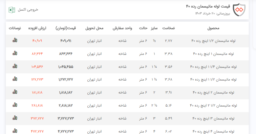 آذین سپهر الوند💫 #لوله مانیسمان 💯 🔴سایز1 اینچ رده20 برند وارداتی واحد شاخه 🔴سایز1/2 اینچ رده20 برندوارداتی واحدشاخه 🔴سایز3/4 اینچ رده20 برندوارداتی واحدشاخه 🔴سایز1/2 2 اینچ رده20 برندوارداتی واحدشاخه 🔴سایز2 اینچ رده20 برندوارداتی واحدشاخه 🔴سایز1/2 1 اینچ رده20 برندوارداتی واحدشاخه 🔴سایز3 اینچ رده20 برندوارداتی واحدشاخه 🔴سایز1/4 1 اینچ رده20 برندوارداتی واحدشاخه 🔴سایز4 اینچ رده20 برند وارداتی واحدشاخه 🔴سایز5 اینچ رده20 برندشوارداتی واحد شاخه 🔴سایز6 اینچ رده20 برندوارداتی واحدشاخه 🔴سایز8 اینچ رده20 برندوارداتی واحدشاخه ❗به دلیل نوسانات بازار برای تایید موجودی و قیمت وثبت سفارش تماس بگیرید❗ کانال تلگرام 🤳 https://t.me/azinsepehralvand سایت🌐 www.azinsepehrco.com ☎️☎️☎️☎️☎️☎️ 📞09132381828 📞09394117828 📞03152467528 https://t.me/azinsepehralva