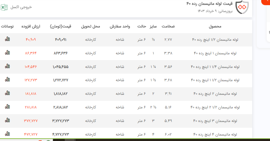 آذین سپهر الوند💫 #لوله مانیسمان 💯 🔴سایز1 اینچ رده20 برند وارداتی واحد شاخه 🔴سایز1/2 اینچ رده20 برندوارداتی واحدشاخه 🔴سایز3/4 اینچ رده20 برندوارداتی واحدشاخه 🔴سایز1/2 2 اینچ رده20 برندوارداتی واحدشاخه 🔴سایز2 اینچ رده20 برندوارداتی واحدشاخه 🔴سایز1/2 1 اینچ رده20 برندوارداتی واحدشاخه 🔴سایز3 اینچ رده20 برندوارداتی واحدشاخه 🔴سایز1/4 1 اینچ رده20 برندوارداتی واحدشاخه 🔴سایز4 اینچ رده20 برند وارداتی واحدشاخه 🔴سایز5 اینچ رده20 برندشوارداتی واحد شاخه 🔴سایز6 اینچ رده20 برندوارداتی واحدشاخه 🔴سایز8 اینچ رده20 برندوارداتی واحدشاخه ❗به دلیل نوسانات بازار برای تایید موجودی و قیمت وثبت سفارش تماس بگیرید❗ کانال تلگرام 🤳 https://t.me/azinsepehralvand سایت🌐 www.azinsepehrco.com ☎️☎️☎️☎️☎️☎️ 📞09132381828 📞09394117828 📞03152467528 https://t.me/azinsepehralvan